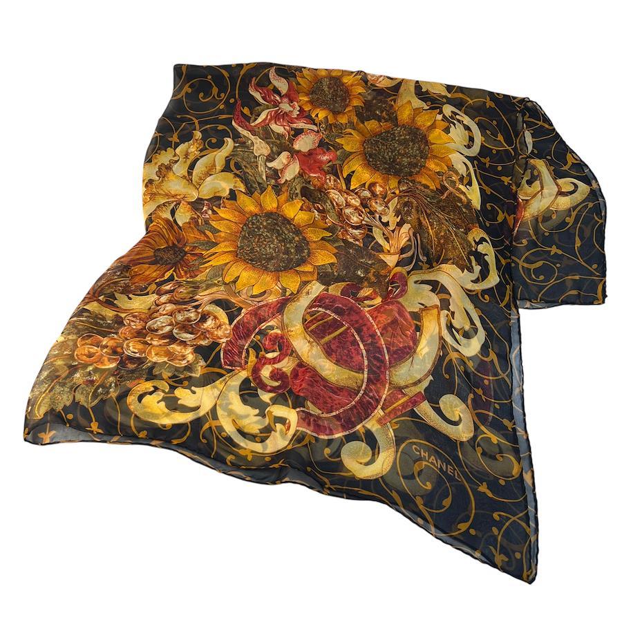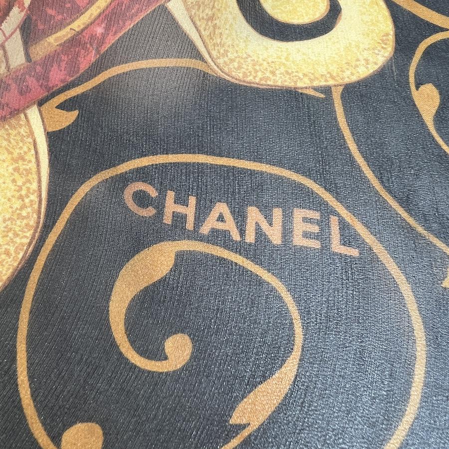 美品 CHANEL シャネル 透け感ひまわり大判スカーフ その他 ブラック A-4504