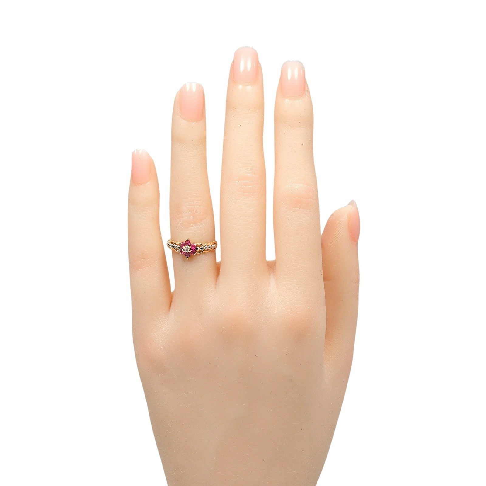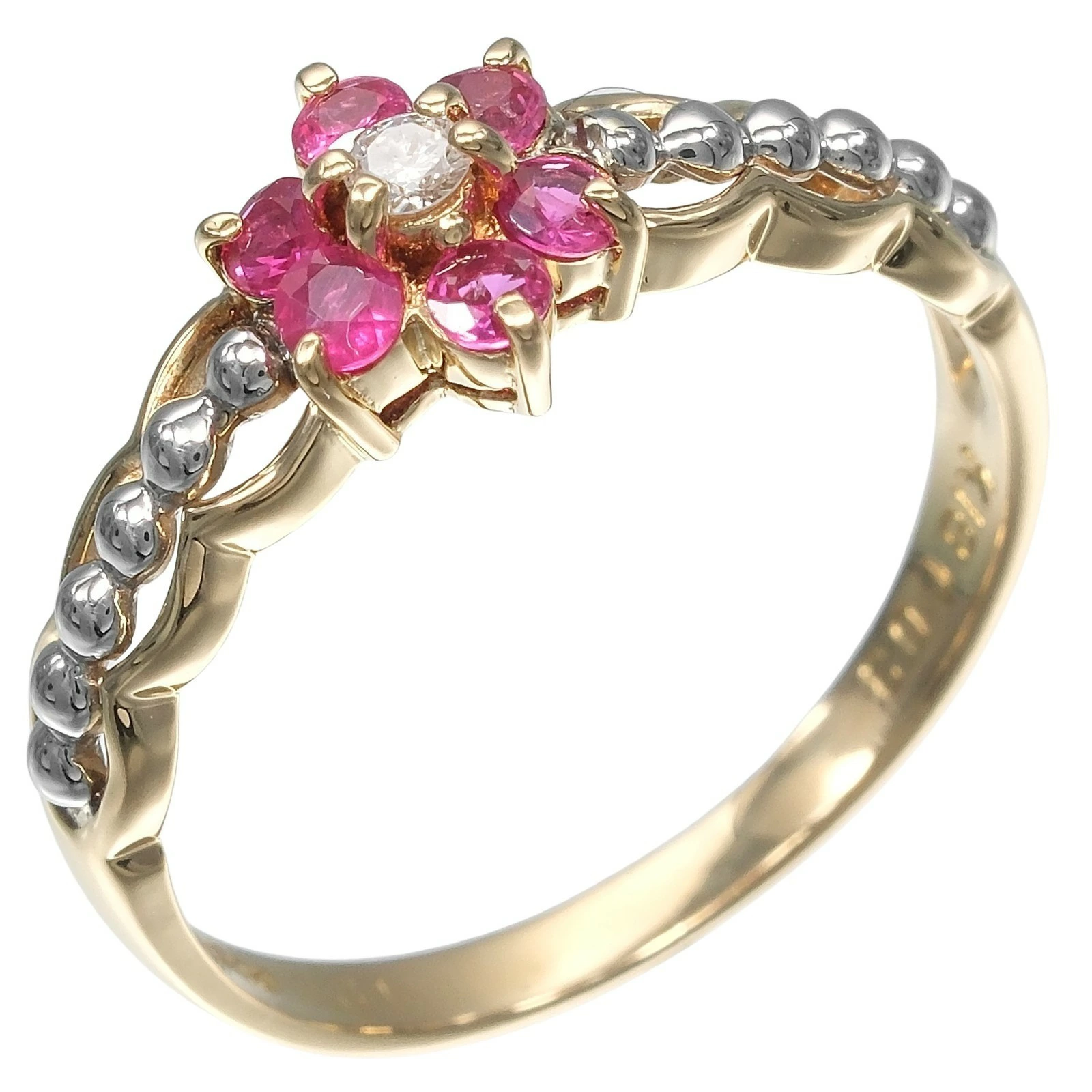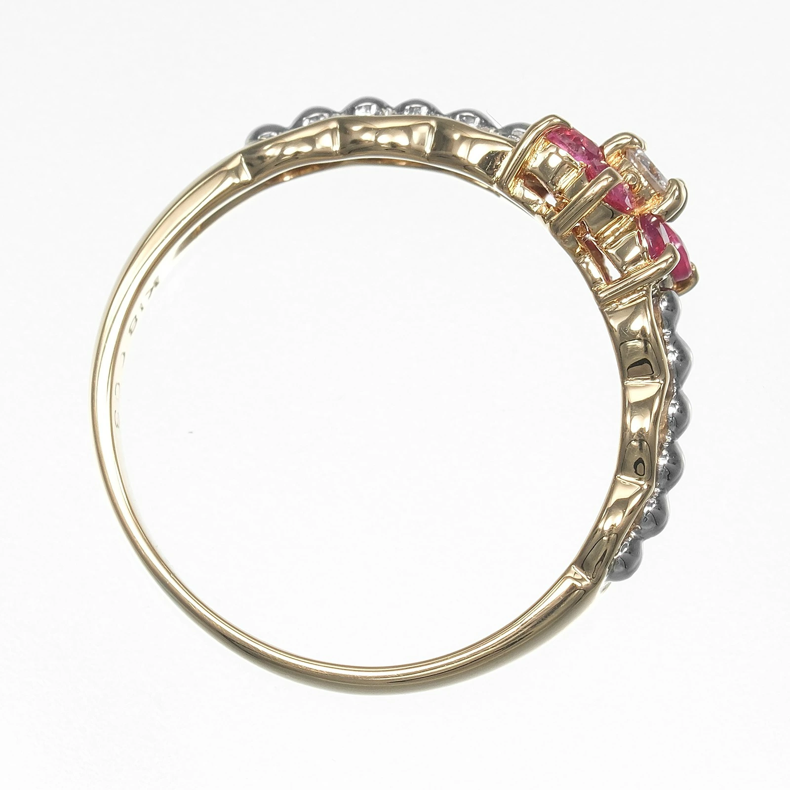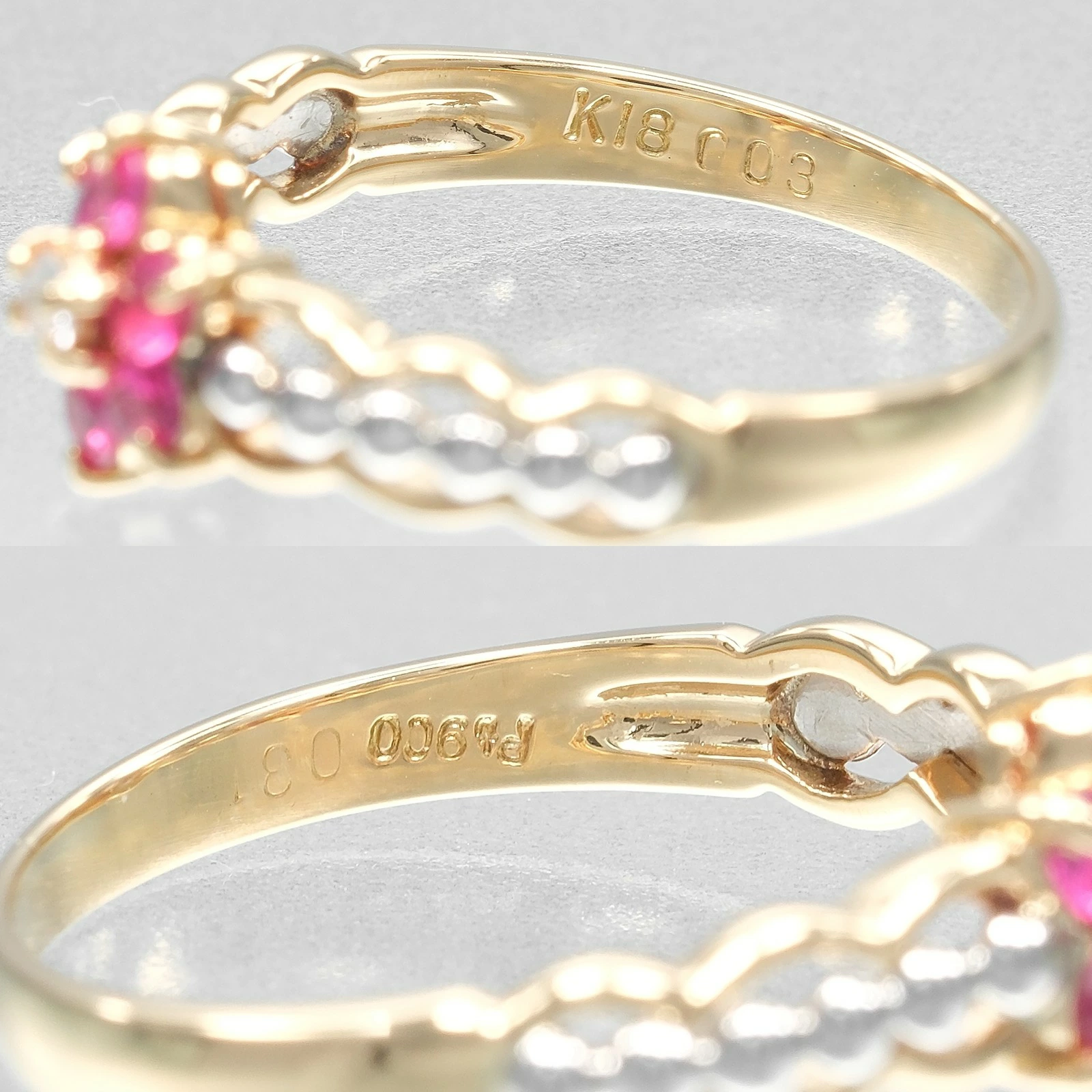 Flower Ring, Size 8.5, K18YG Yellow Gold, Pt900 Platinum, Ruby, 0.03/0.31mm, Approx. 2.4g, Pre-owned, Rank A