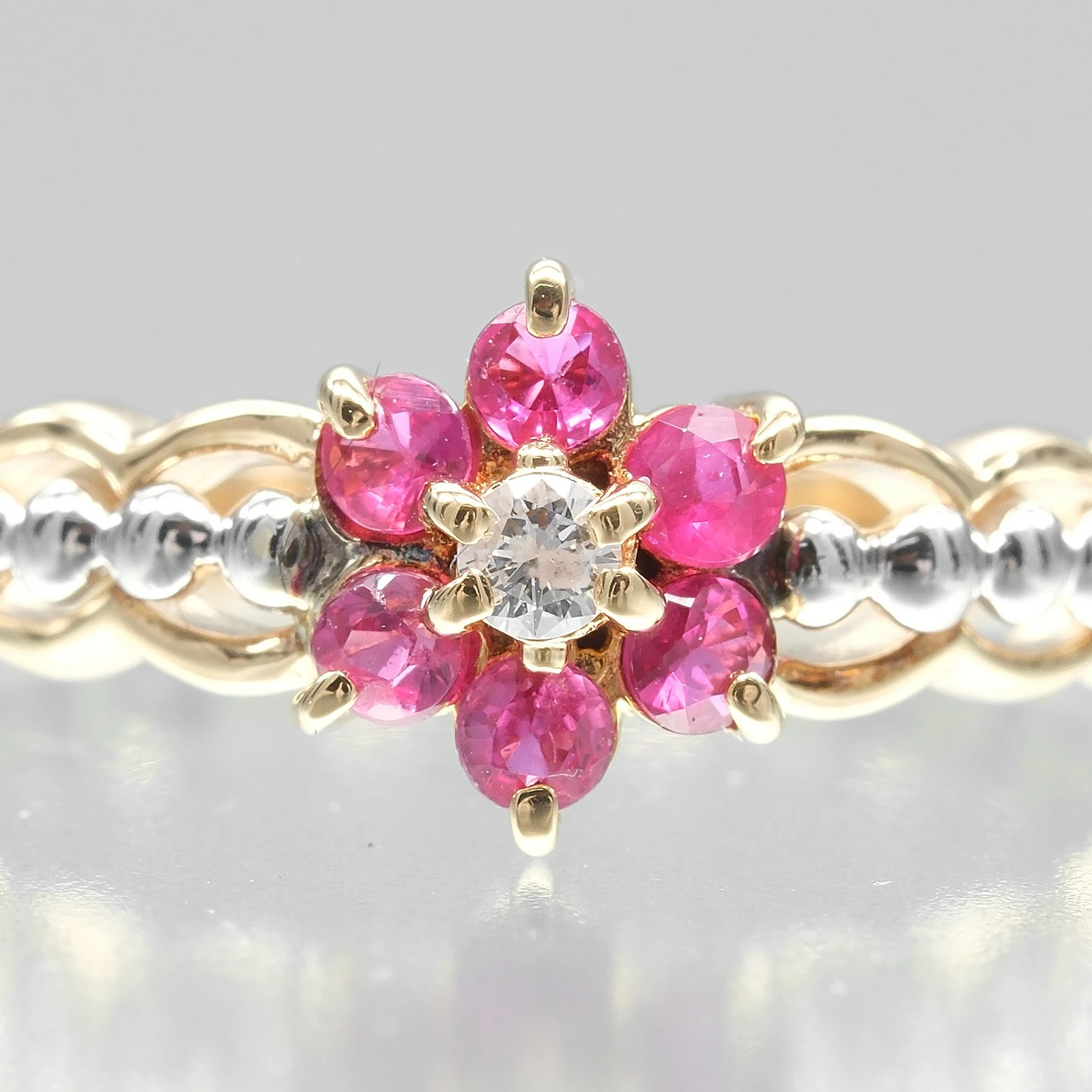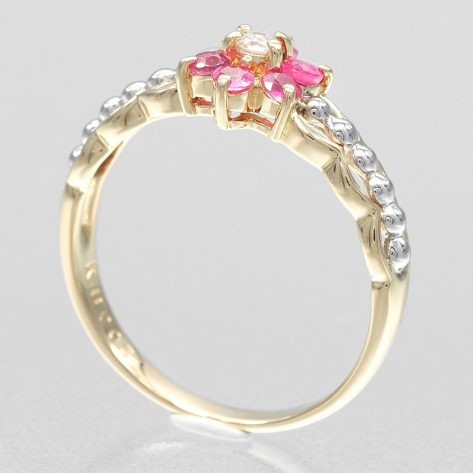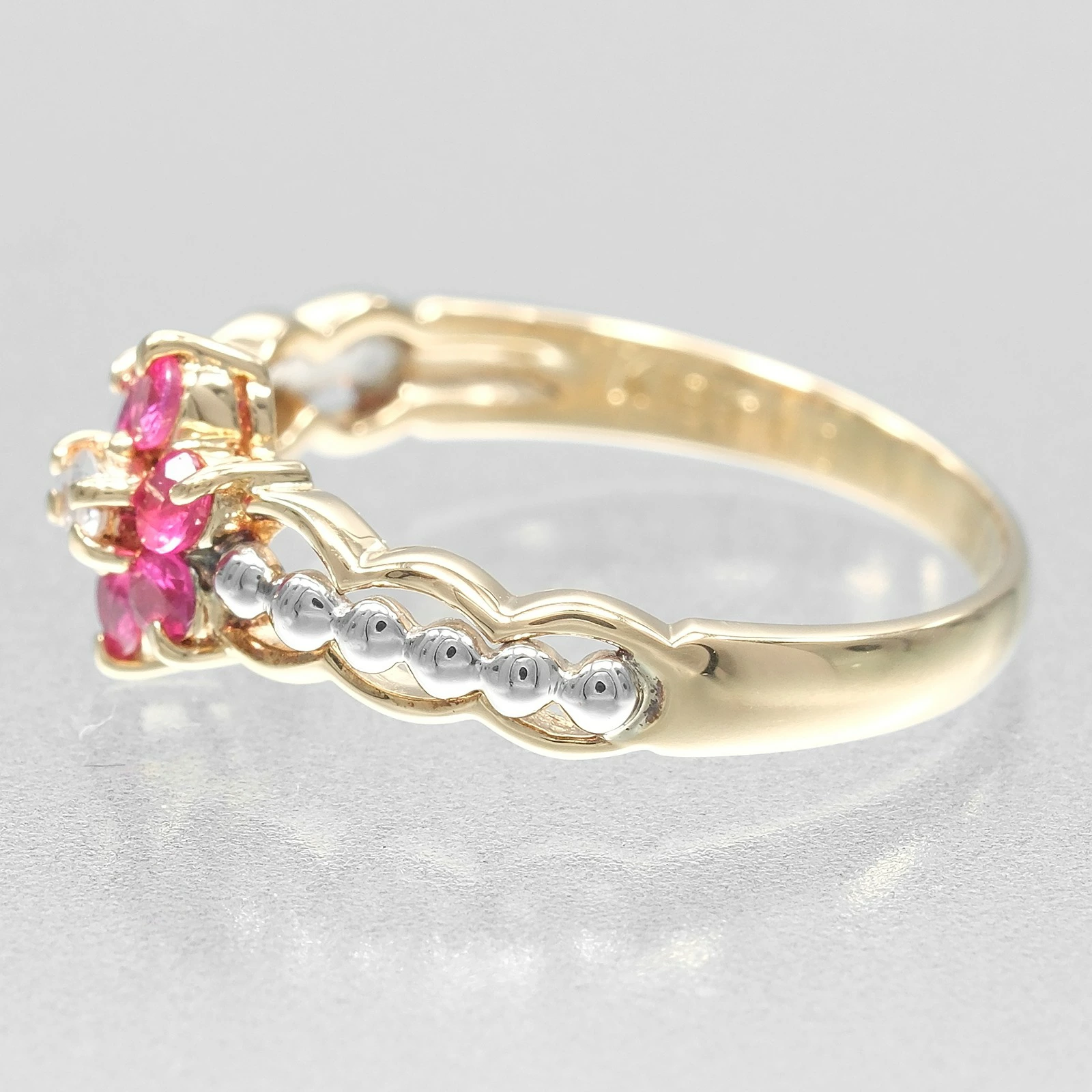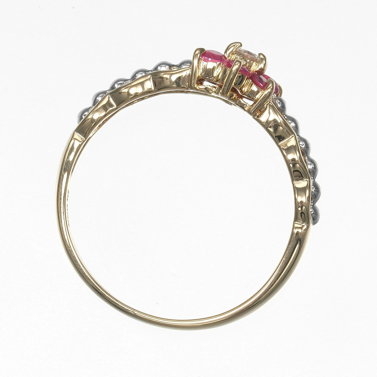 Flower Ring, Size 8.5, K18YG Yellow Gold, Pt900 Platinum, Ruby, 0.03/0.31mm, Approx. 2.4g, Pre-owned, Rank A