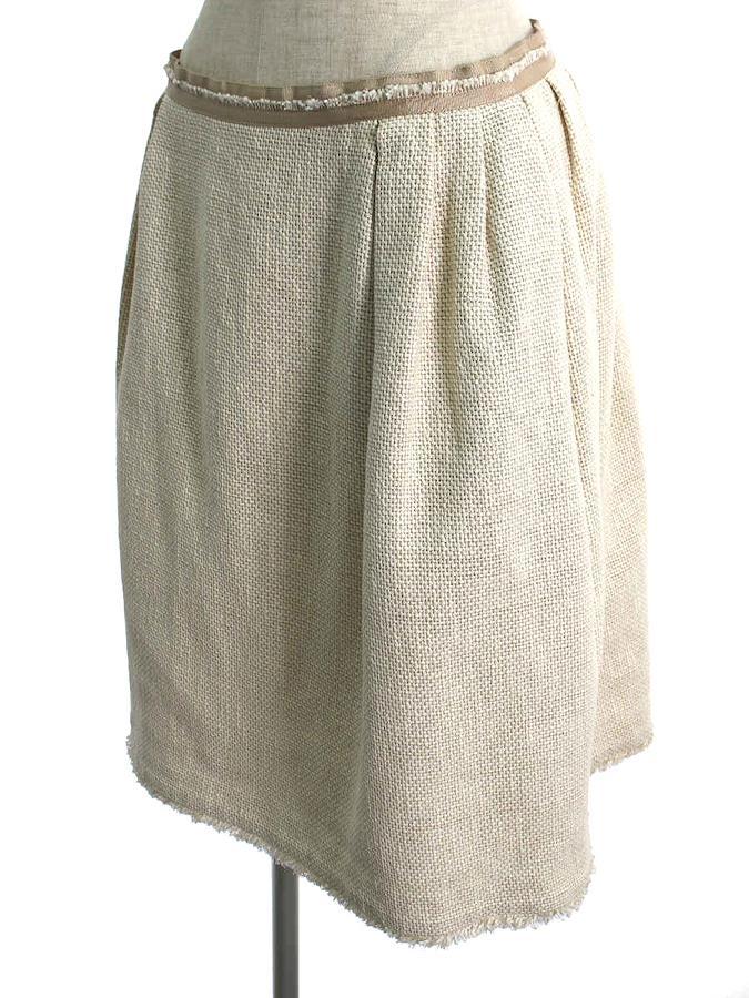 【管理番号】0240998h0239472【ブランド・アイテム】FOXEY BOUTIQUE スカート【性別タイプ】レディース【表記サイズ】40【実寸サイズ】総丈:約55cmウエスト:約70cm伸縮:なし【カラー】ベージュ【素材】画像参照【状態の詳細】USED品ではありますが、目立つダメージや大きな汚れのないコンディションのよい美品です。【汚れ・シミ】特に目立つものはございません。【キズ】特に目立つものはございません。【毛玉・毛羽立ち】正面ウエストまわりに若干の毛羽立ち感がございます。【使用感】少ない〜普通【こんな方におススメ】USED品でも汚れやダメージが少ないお品物をお探しの方にオススメ【付属品】付属品なし【備考】販売年月:2009型番:24940