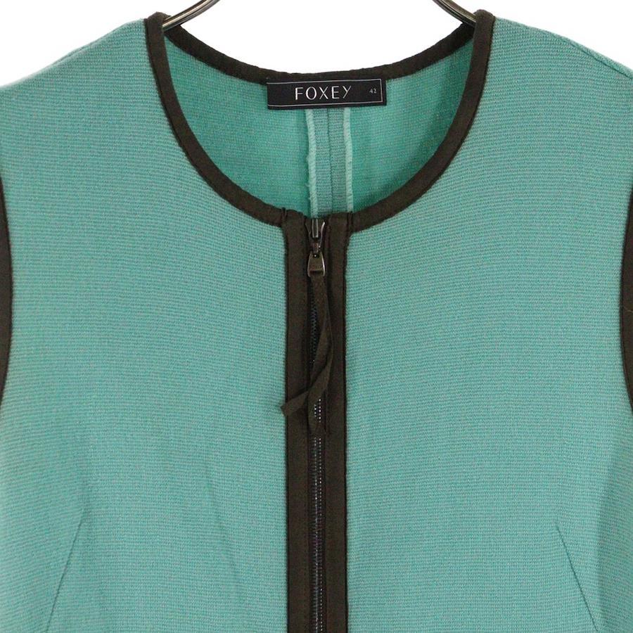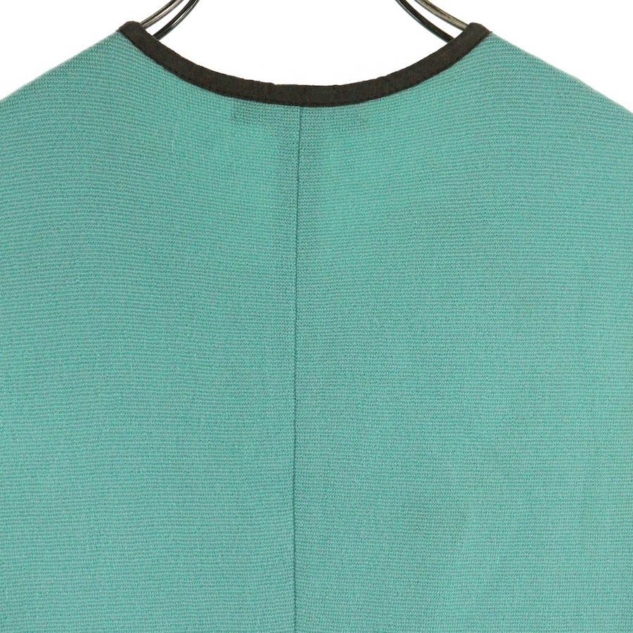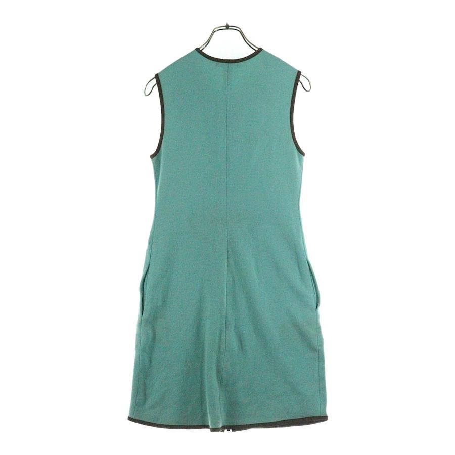 [モデル]バイカラー ジップアップ ミディアム タイト ウール ニットワンピース グリーン レディース