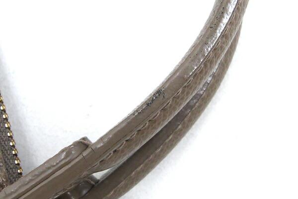 状態:外側:角スレあり。持ち手汚れあり。ショルダーフチコバにヒビあり。内側:薄汚れあり。内ポケット縫い目に糸連れあり。金具:薄キズ、スレあり。