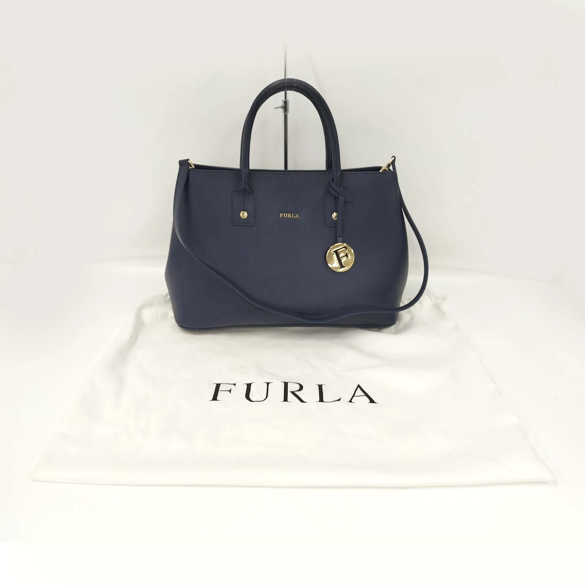 FURLA 2-Way Shoulder Bag in Navy Leather