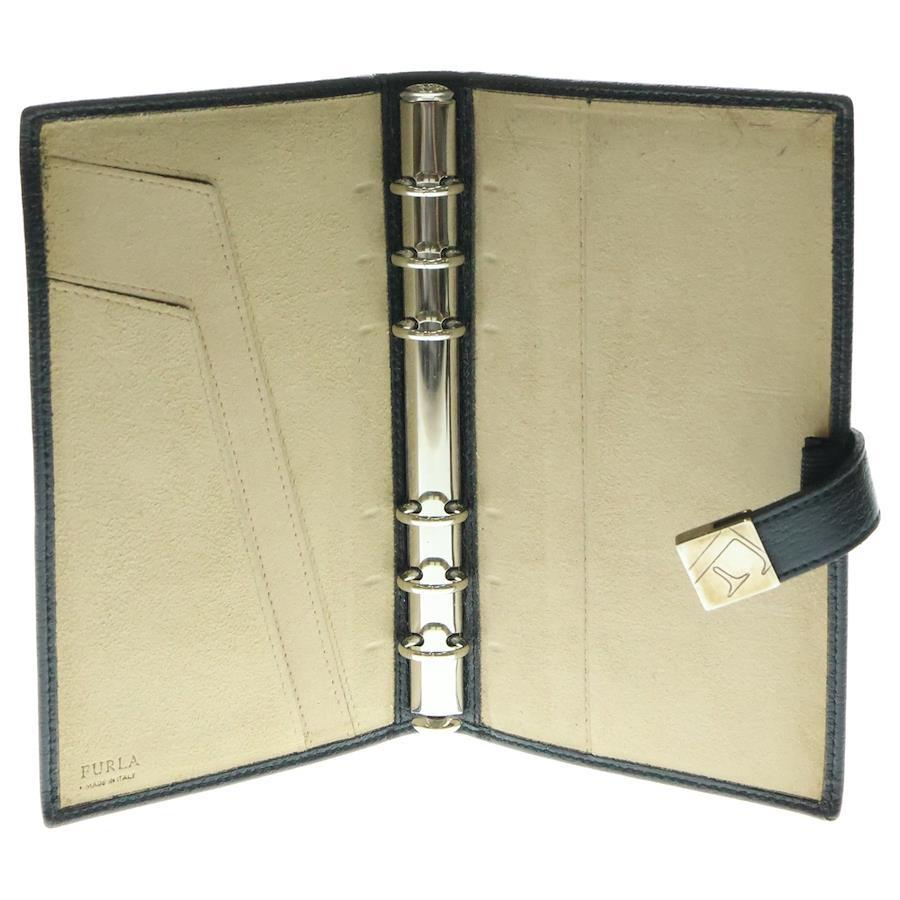 [モデル]レザー システム手帳カバー バイブルサイズ 6穴 シルバー金具 ブラック