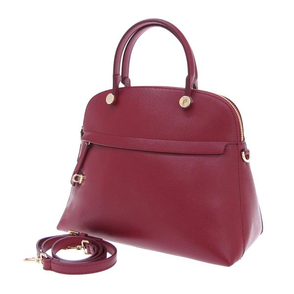 フルラの2WAYハンド「パイパーM」のご紹介です!本体は型押しレザー使用。金具は金色。開閉はファスナー式で、中はナイロン生地が裏地として使われています。中はファスナーポケット1つ、ポケット1つ、携帯電話用ポケット1つあり。表はファスナー開閉式のポケット1つあり。ファスナープルの先に留めることのできる南京錠モチーフ欠品。底部分には鋲が4つ付いています。ショルダーストラップは5段階長さ調整可。☆状態は、本体の型崩れ、表面のスレ・薄汚れ、角スレ、縁のスレ、持ち手縁のスレ、金具の小傷・くすみ、中の薄汚れ、底鋲の小傷・くすみがございます。通常使用には問題なしですよ!南京錠モチーフ欠品もあり、その分、お求めやすくなっておりますよ!