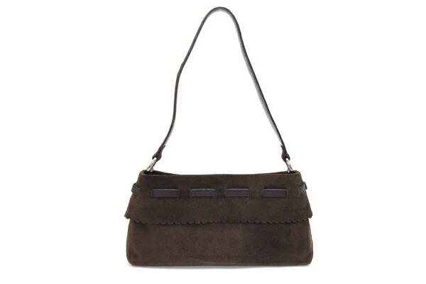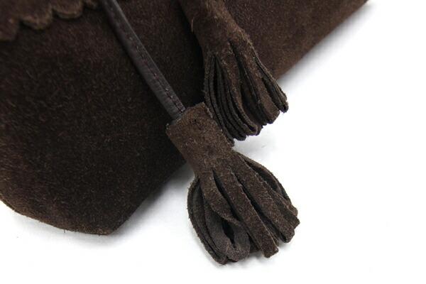 フルラセミショルダーダークブラウンスウェードレザー中古セミショルダーバッグ肩掛けタッセルミニバッグレディースFURLA