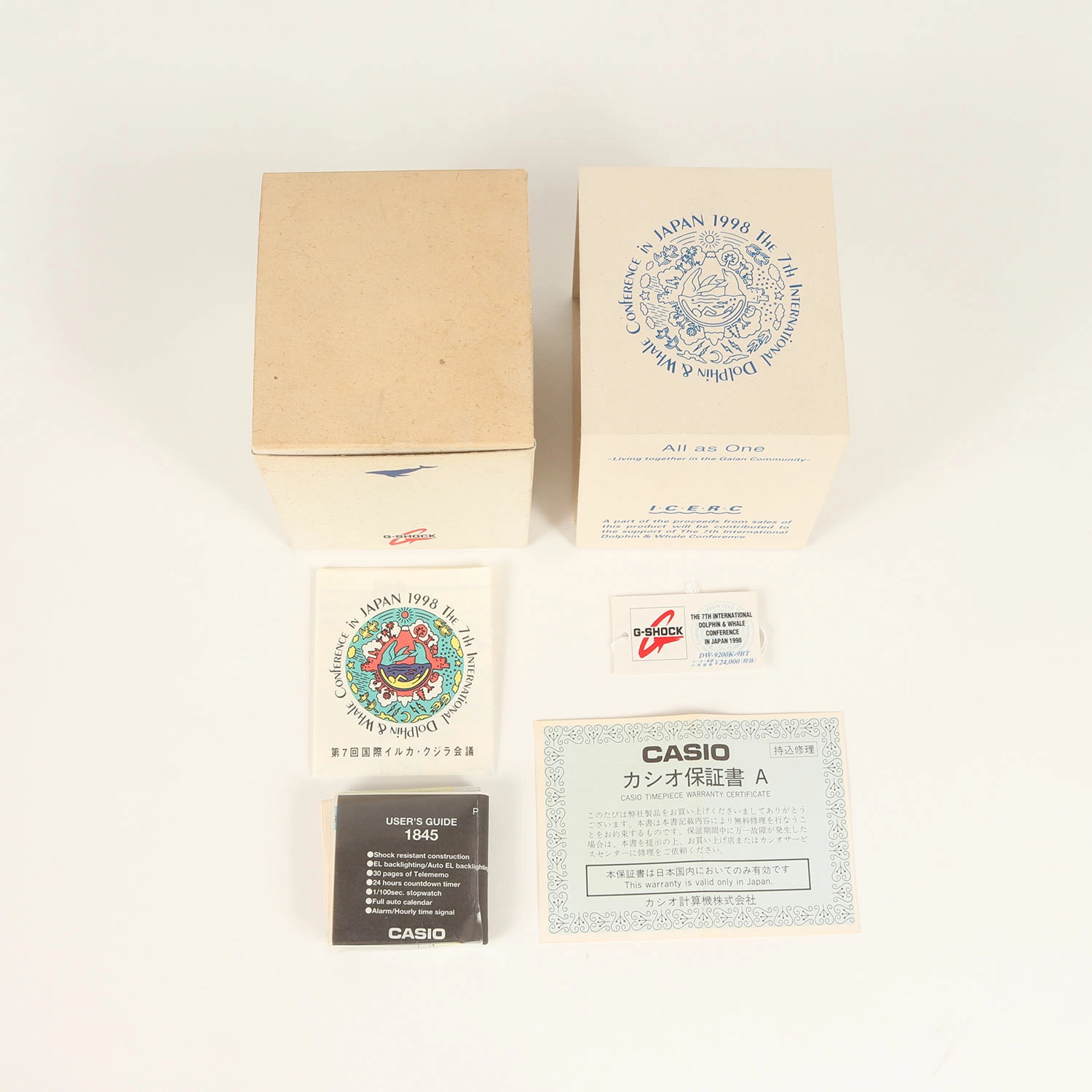 | 商品説明 | ・“第7回国際イルカ・クジラ会議(The 8th International Dolphin & Whale Conference / I.C.E.R.C)記念”モデル ・通称“イルクジ”モデル ・耐衝撃構造(ショックレジスト) ・無機ガラス ・20気圧防水 ・ケース、ベゼル材質 樹脂 ・樹脂バンド |