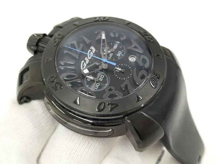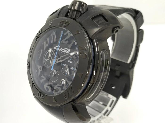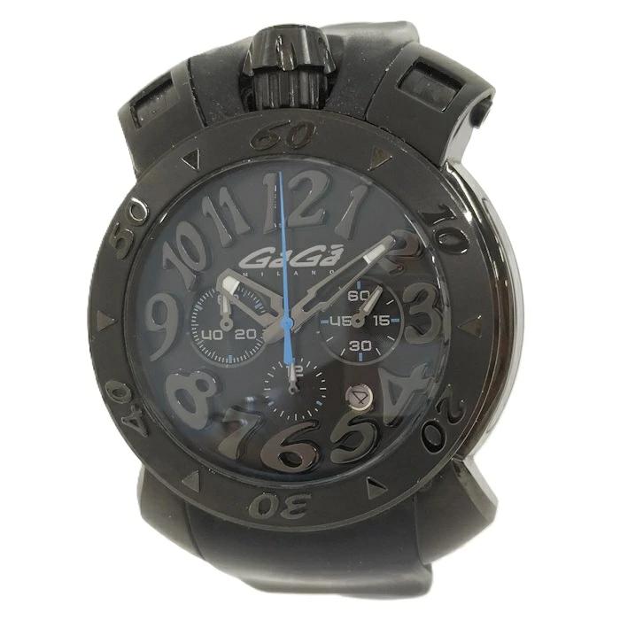 GaGa MILANO Manuale 48 Chronograph Men's Watch, Stainless Steel Quartz Movement, Rubber, Black Dial, 8012.01