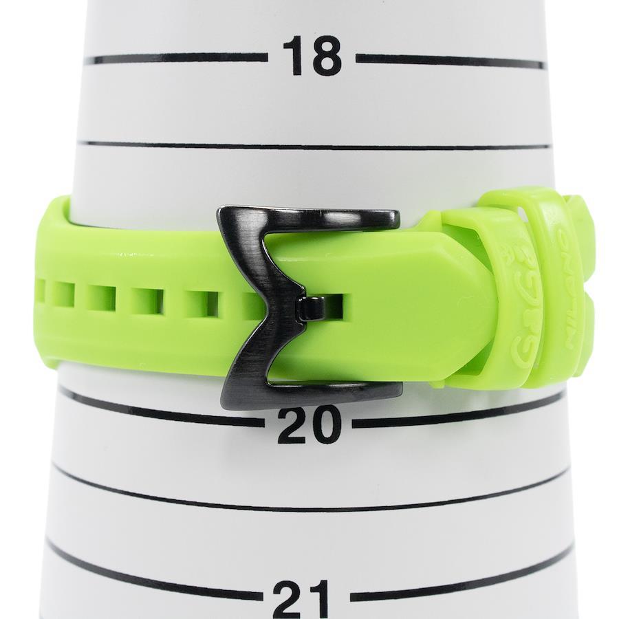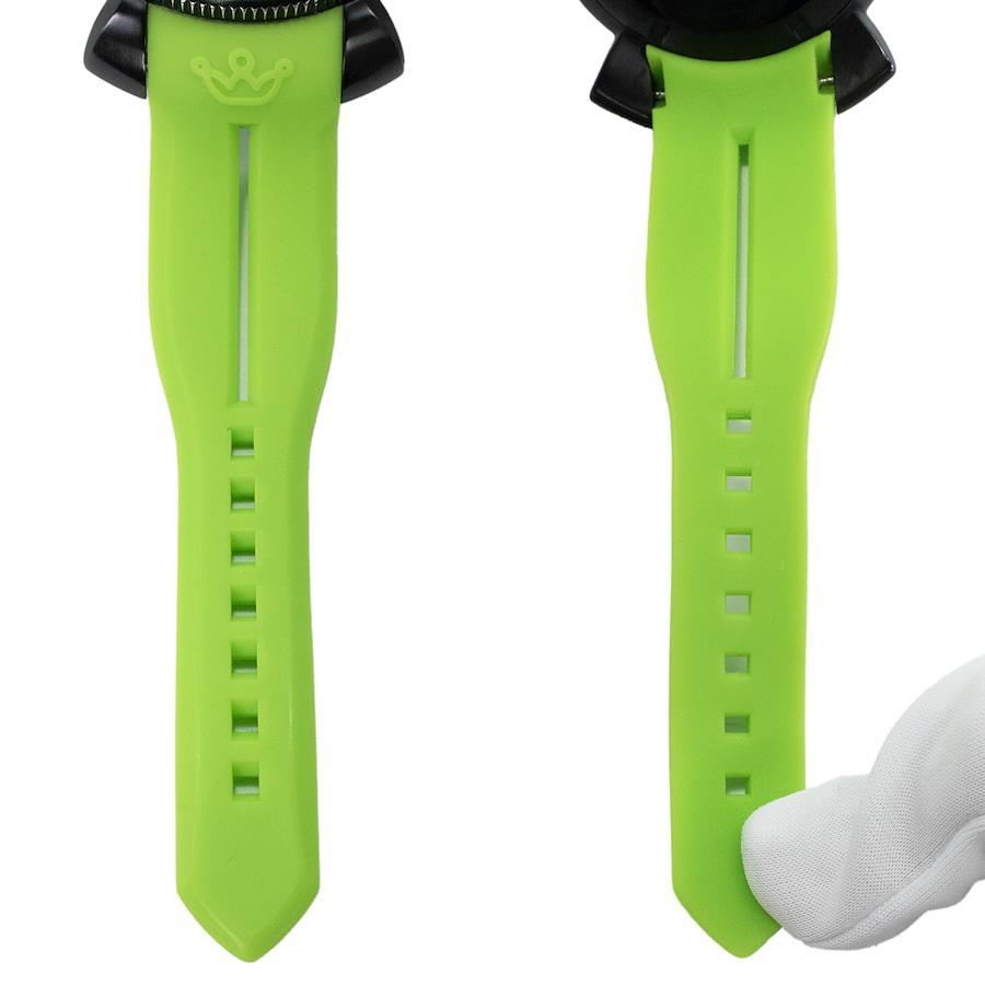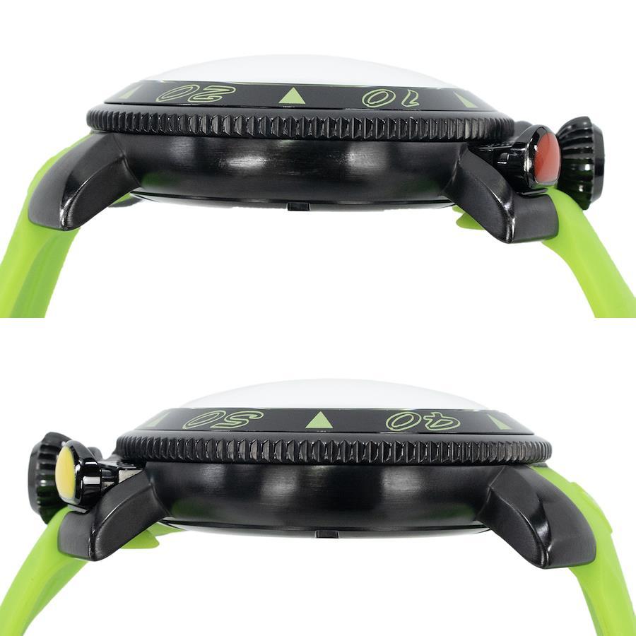 特筆すべきは、リューズやラバーストラップまでグリーンで統一した、この大胆なまでの配色にあります。