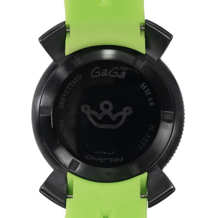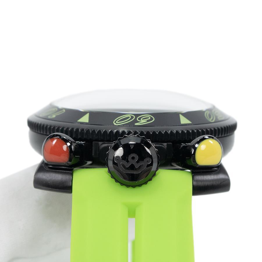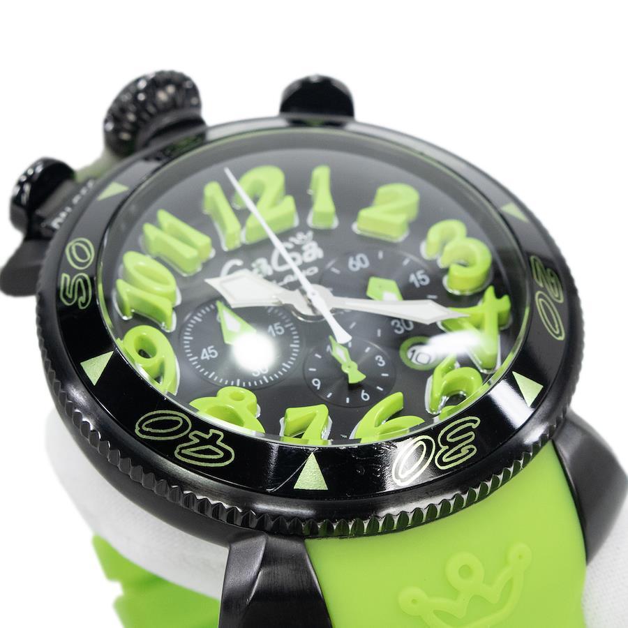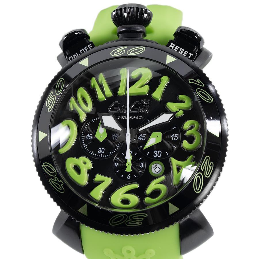 こちらは鮮烈なグリーンが個性を主張する、ガガミラノのクロノ48mm・腕時計でございます。