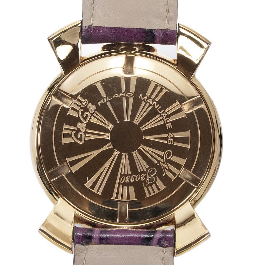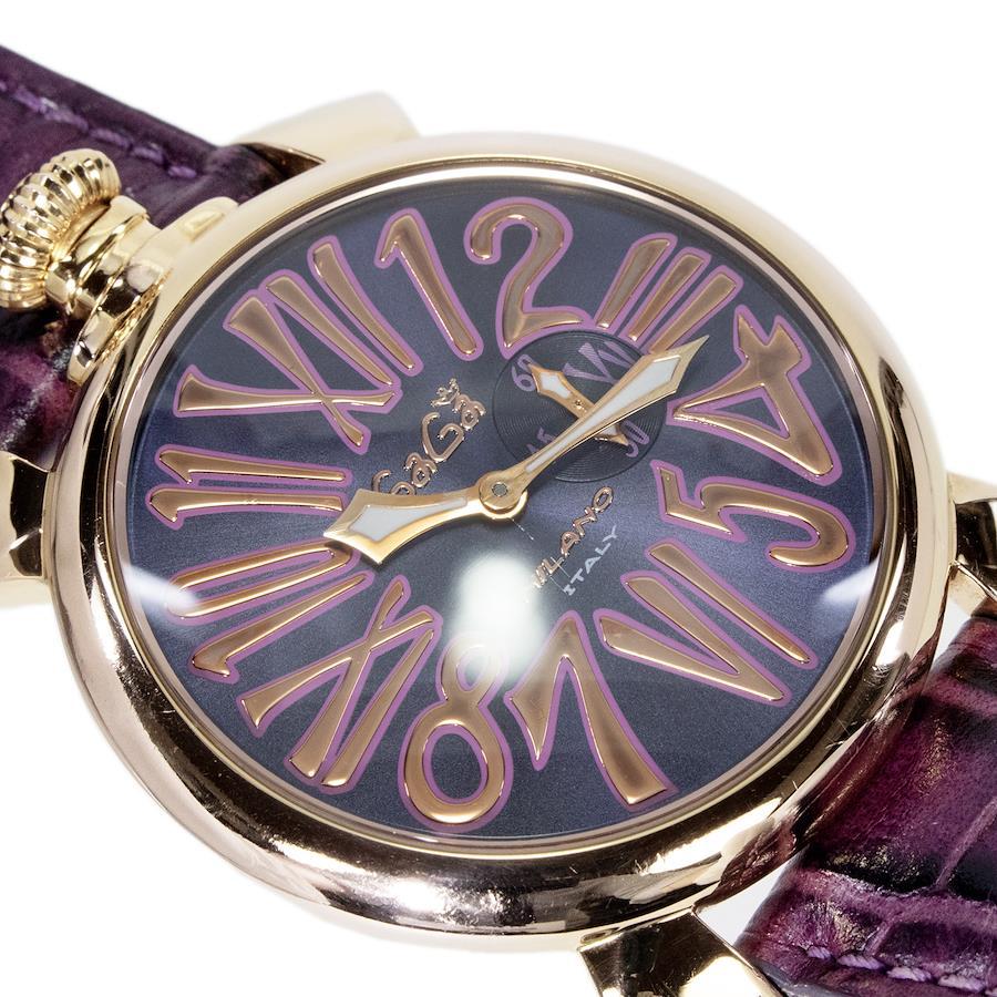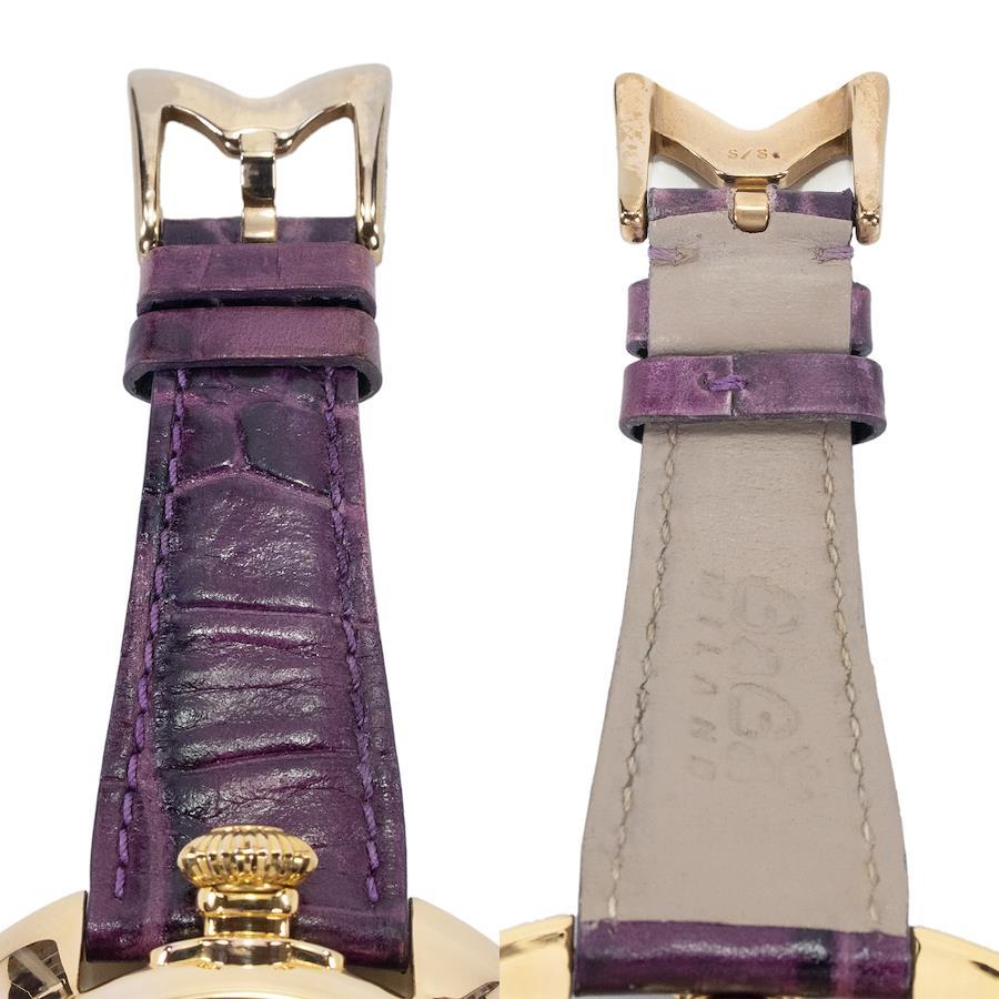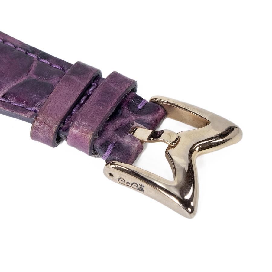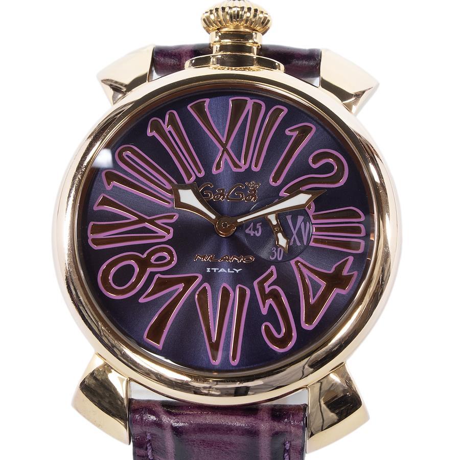 こちらは光沢あるパープルカラーが目を惹きます、ガガミラノの腕時計でございます。
