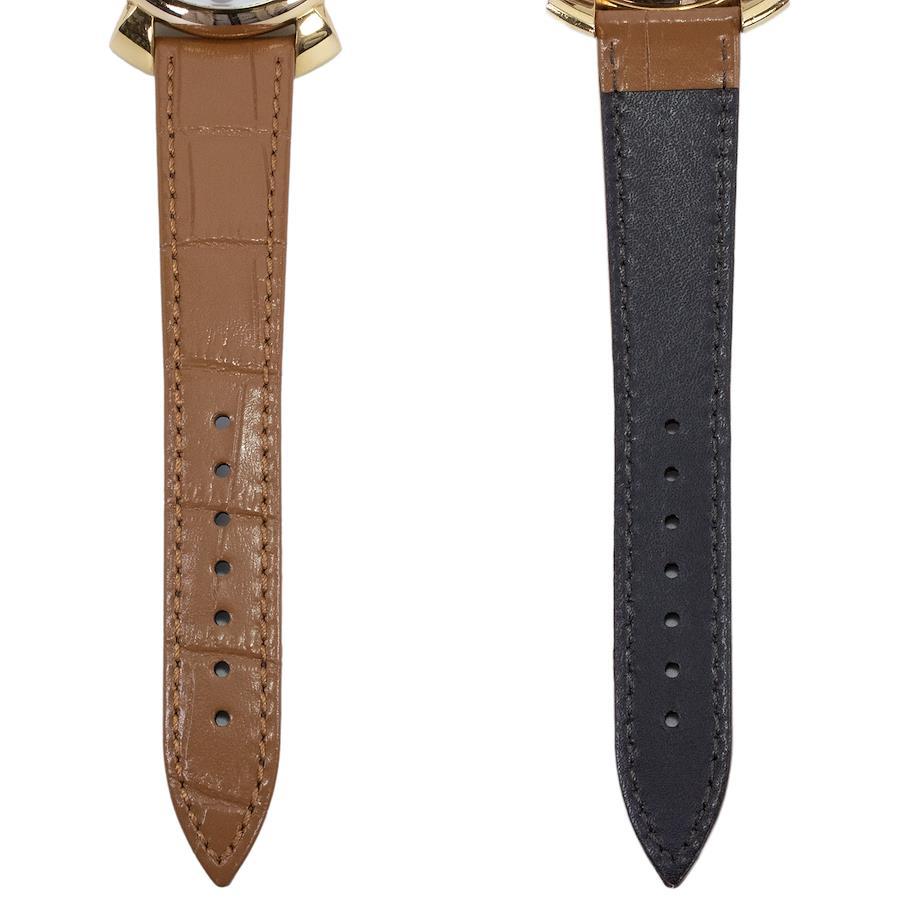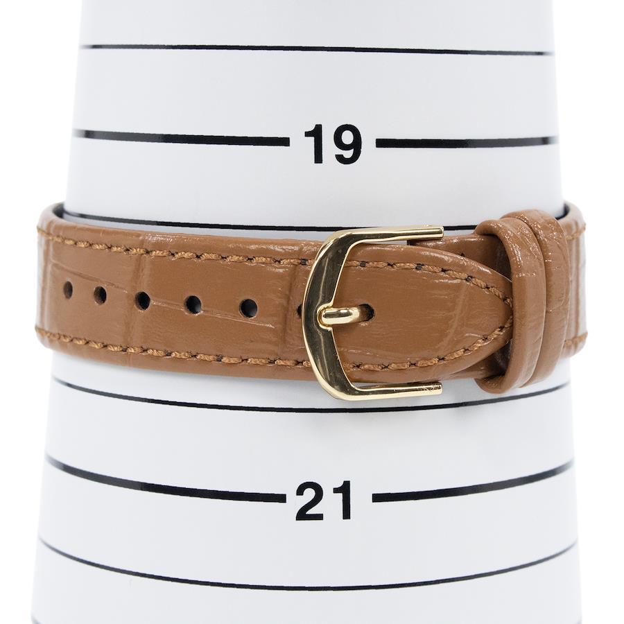 40mmのケースサイズでありながら、ピンクゴールドとブラウンの配色は肌馴染みが良く、手首を美しく演出いたします。