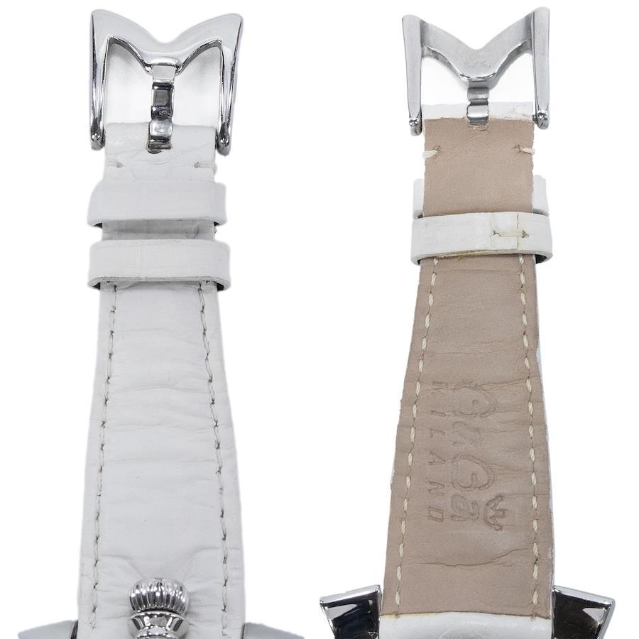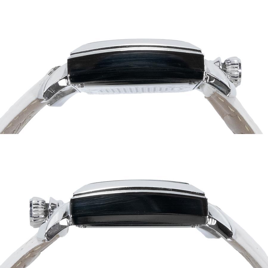 特徴的なスクエアケースとホワイトレザーベルトの組み合わせが、知性的かつ清廉な印象を与えます。