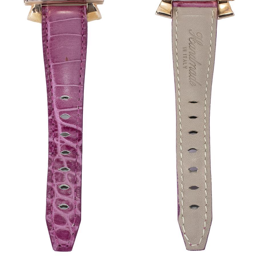 光の当たる角度によって表情を変える、美しい白蝶貝の文字盤に、カラフルで立体的なインデックスを配した、大変お洒落な逸品です。