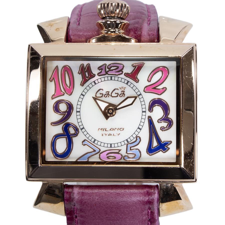 こちらは虹色の輝きを放つシェル文字盤が美しい、ガガミラノの腕時計でございます。