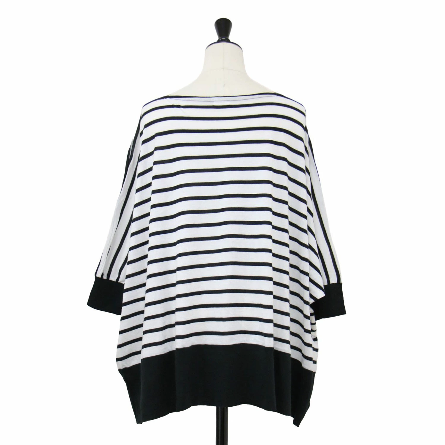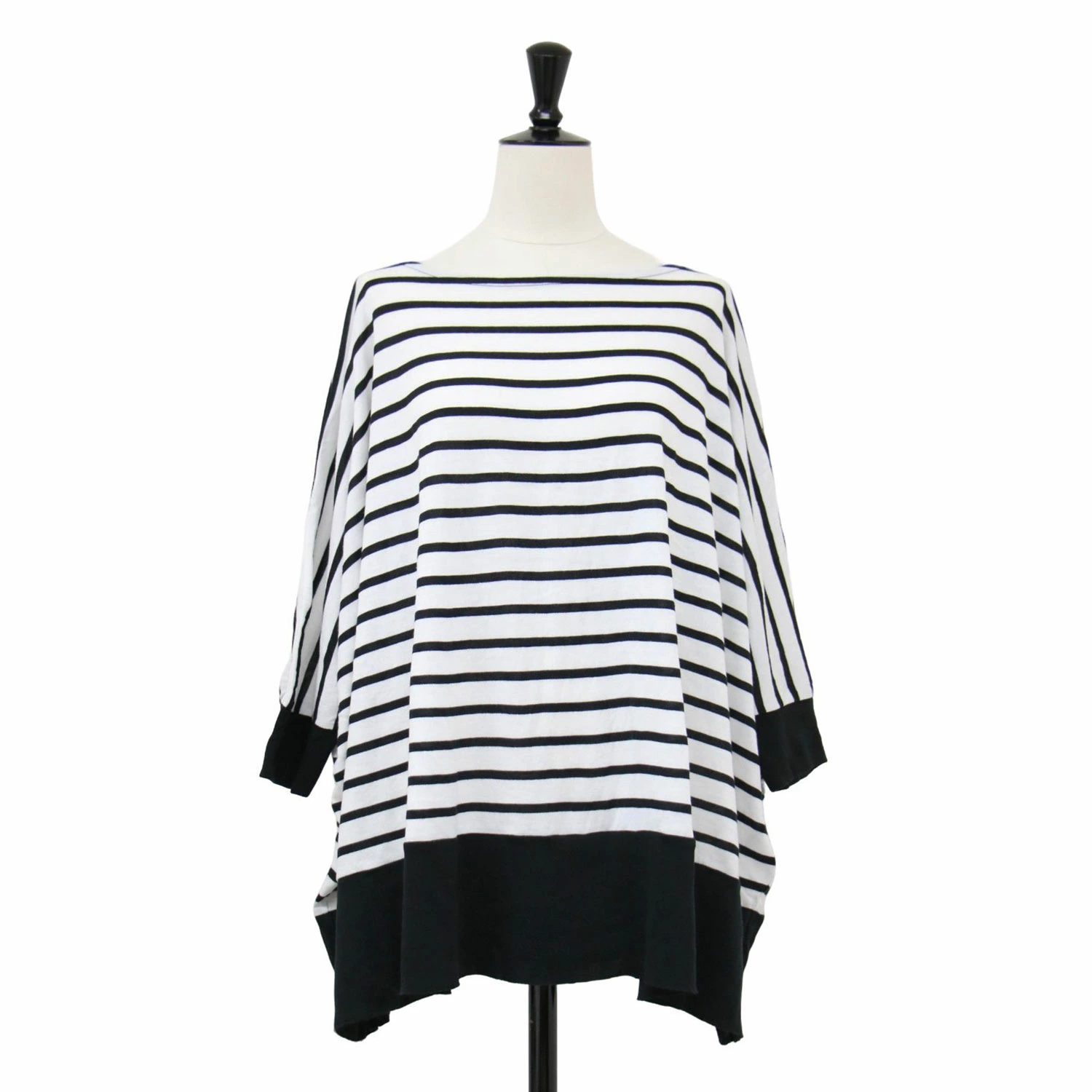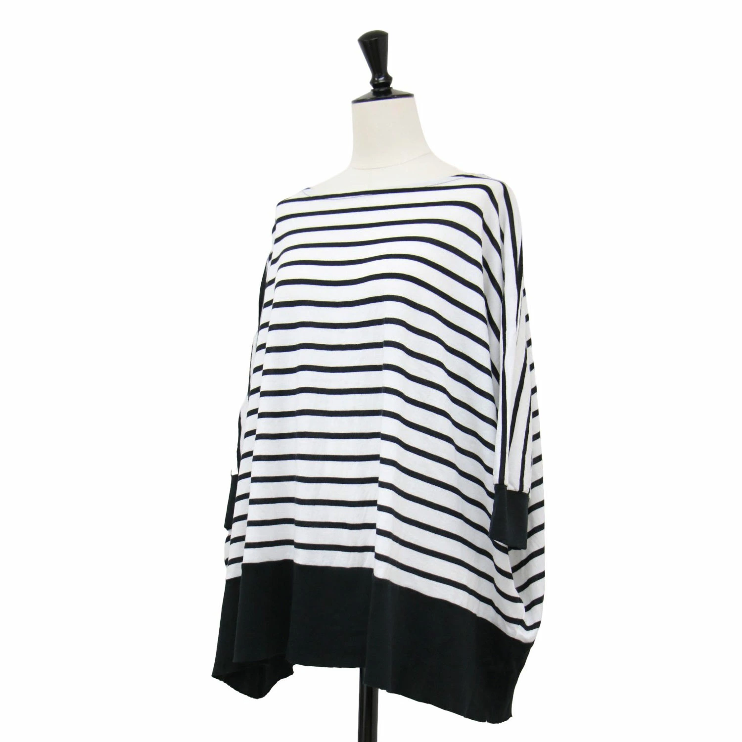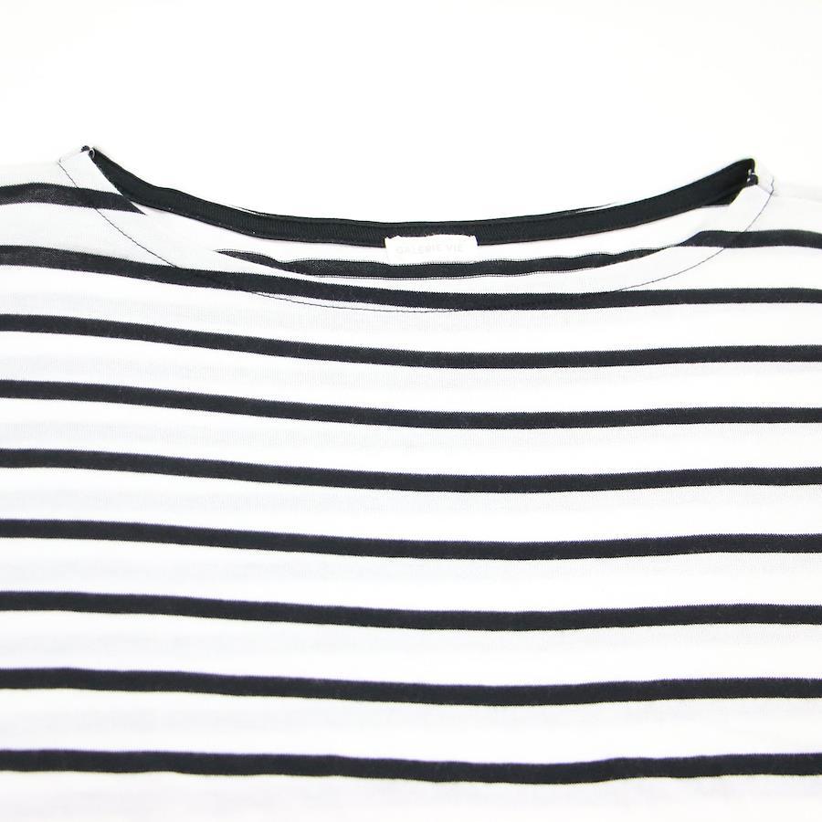 GALERIE VIE Knitwear in White and Black, Size: Free / Fall/Winter 2024 Powder Cotton Wide Pullover / Knit 3/4 Sleeve Boat Neck Striped High Gauge / Women's Top Sweater [Pre-owned] [K4619]