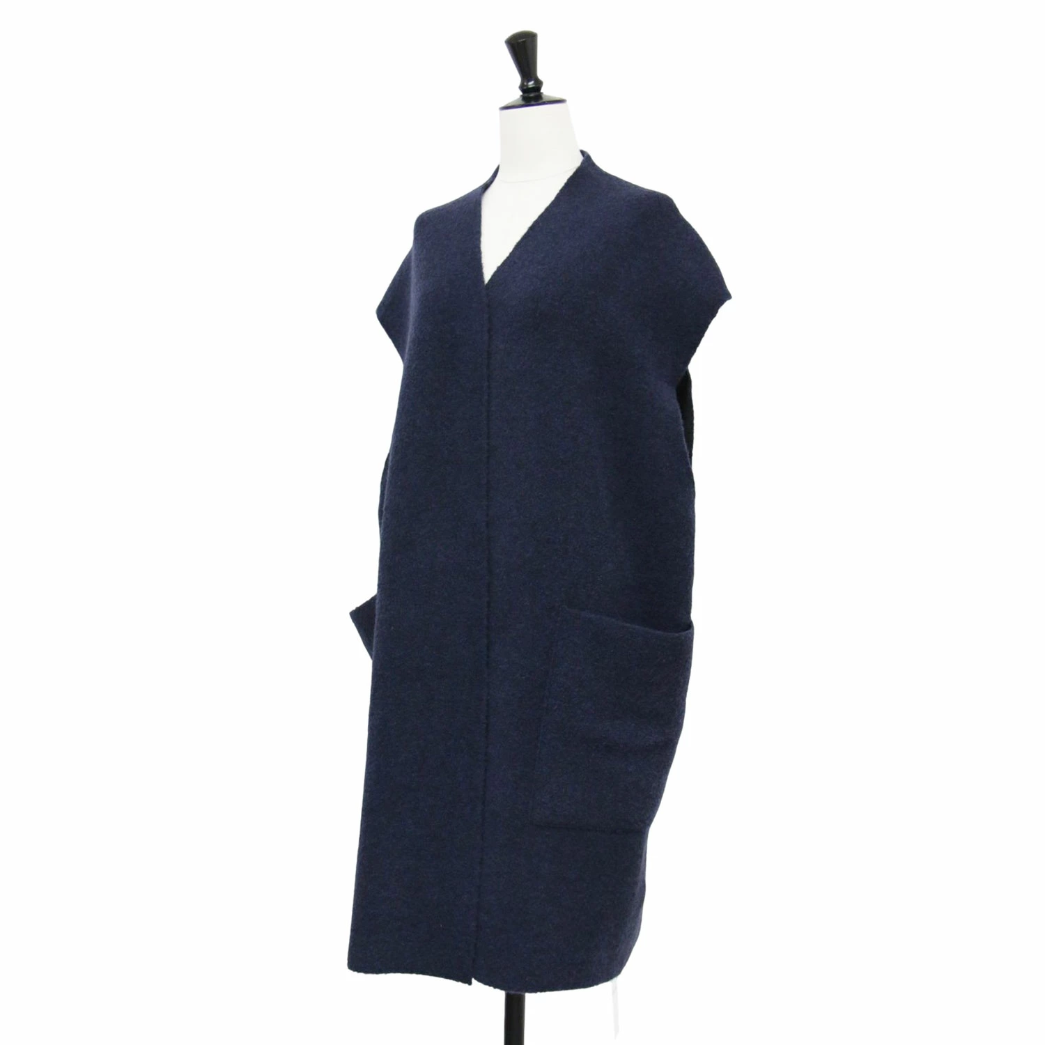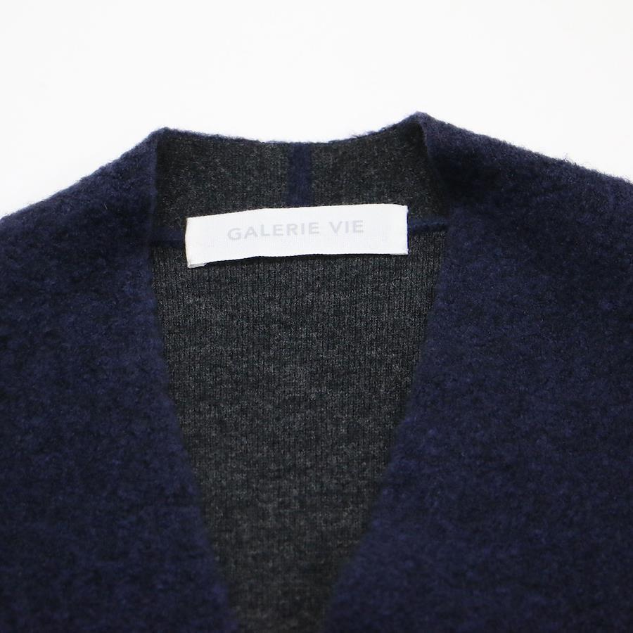 GALERIE VIE Navy Gilet, Size: Free | Fall/Winter 2024 Boucle Double-Face Mid-Length Gilet/Vest | Knit, Mid-Length, Pockets, Buttonless | Women's Top, Sweater [Pre-owned] [K4617]