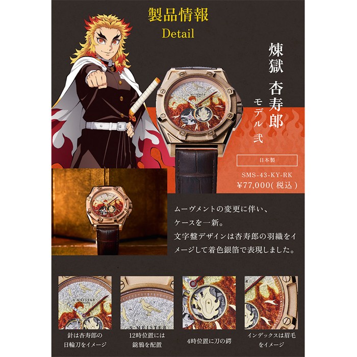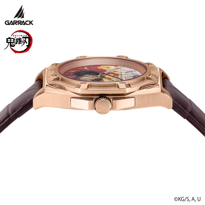GARRACK S-MEISTER Demon Slayer Collaboration Watch, Kyojuro Rengoku Model, SMS-43-KY-RK, Red Dial, Brown Leather Strap, Stainless Steel, Automatic Movement [Comes with Box and Warranty]