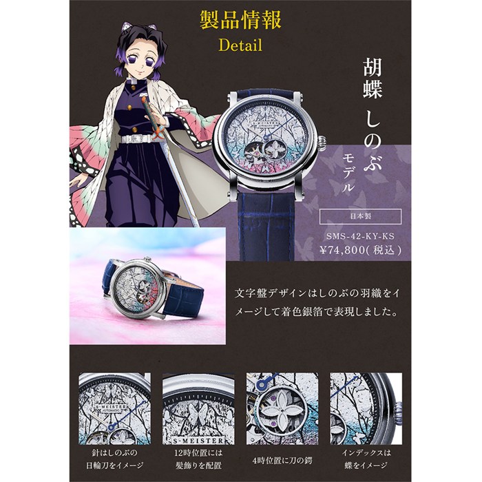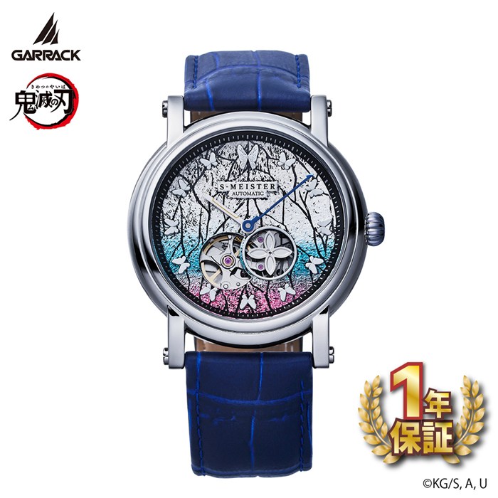 ■商品名ギャラック GARRACK 腕時計 S-MEISTER 鬼滅の刃コラボ 胡蝶しのぶモデル SMS-42-KY-KS ホワイト 文字盤 ブルー 牛革ベルト SS 自動巻き 【箱・保付き】