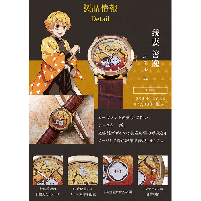 ■商品名ギャラック GARRACK 腕時計 S-MEISTER 鬼滅の刃コラボ 我妻善逸モデル SMS-40-KY-AZ オレンジ 文字盤 ブラウン 牛革ベルト SS 自動巻き 【箱・保付き】