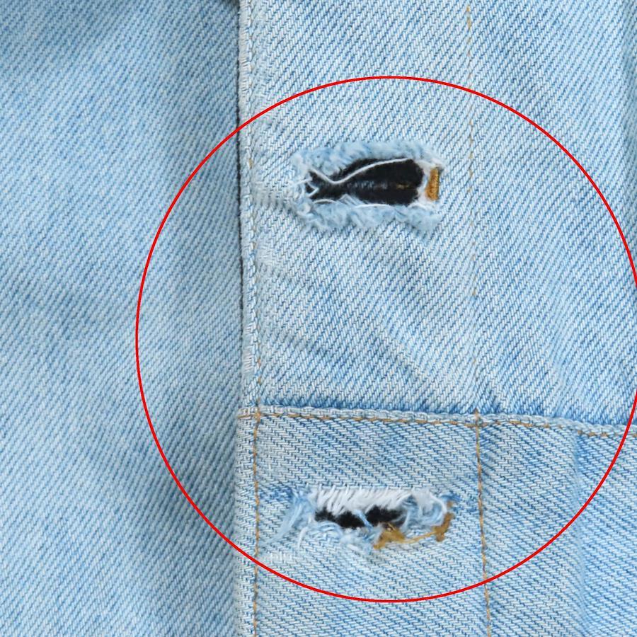 ※第4、第5ボタンホールにステッチのほつれ、袖口などに金具の欠品がございます。(写真参照)