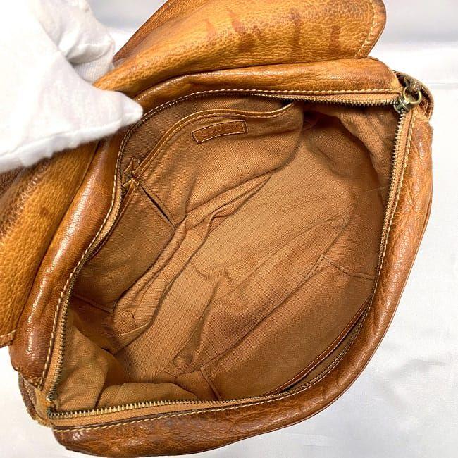 詳細説明:下部や縁に擦れ、表面全体的に薄汚れ、サイドマチに素材剥がれ、マグネット付近に傷、ストラップにペン跡汚れ・縁に擦れ、内ポケットにインク汚れ等使用感が強くありますがまだまだお使いいただけるお品物です。