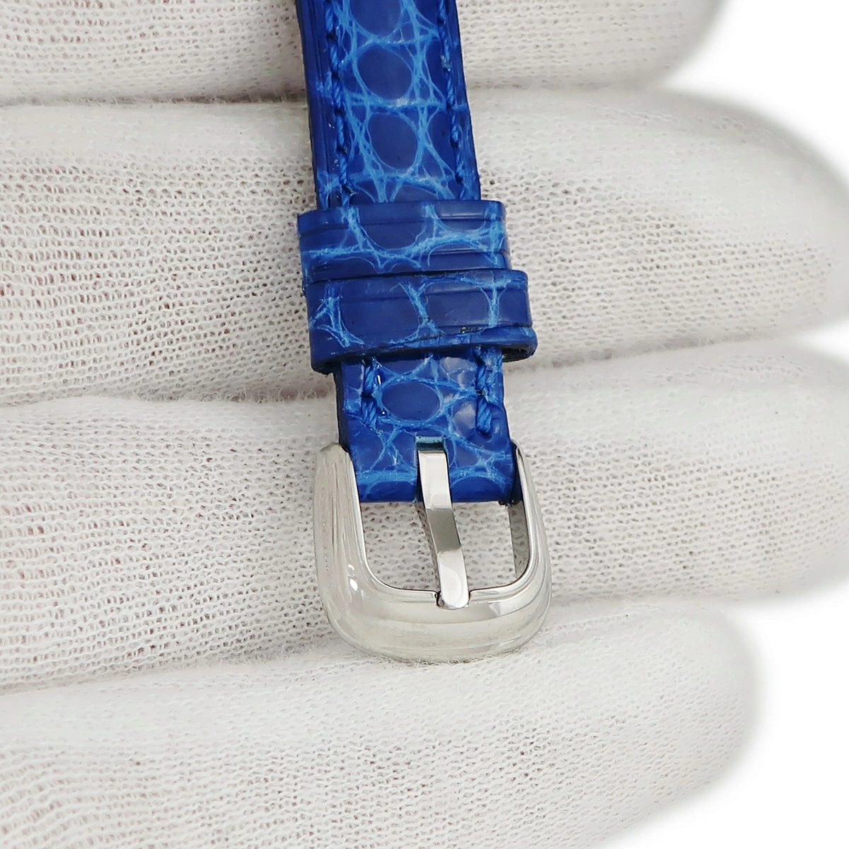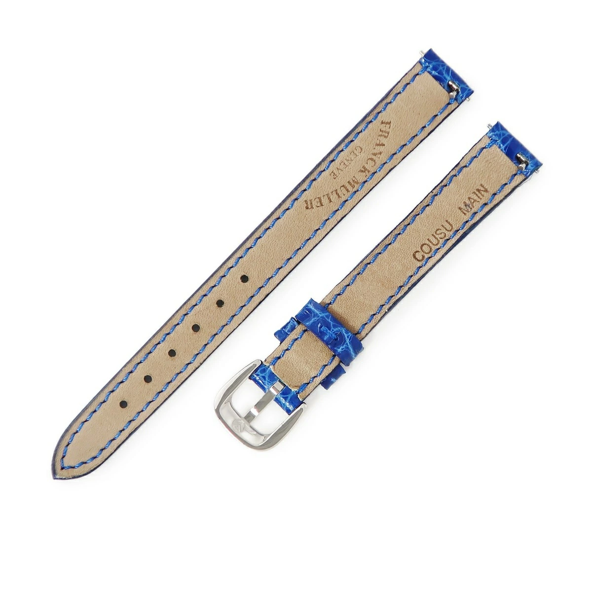 フランクミュラー FRANCK MULLER 腕時計パーツ 純正 2500 2502 トノウカーベックス用 クロコバンド クロコダイル ステンレススチール ブルー 未使用 ベルト 11mm ブルー 青 尾錠付き SS - レディース定番 人気 美品 【中古】