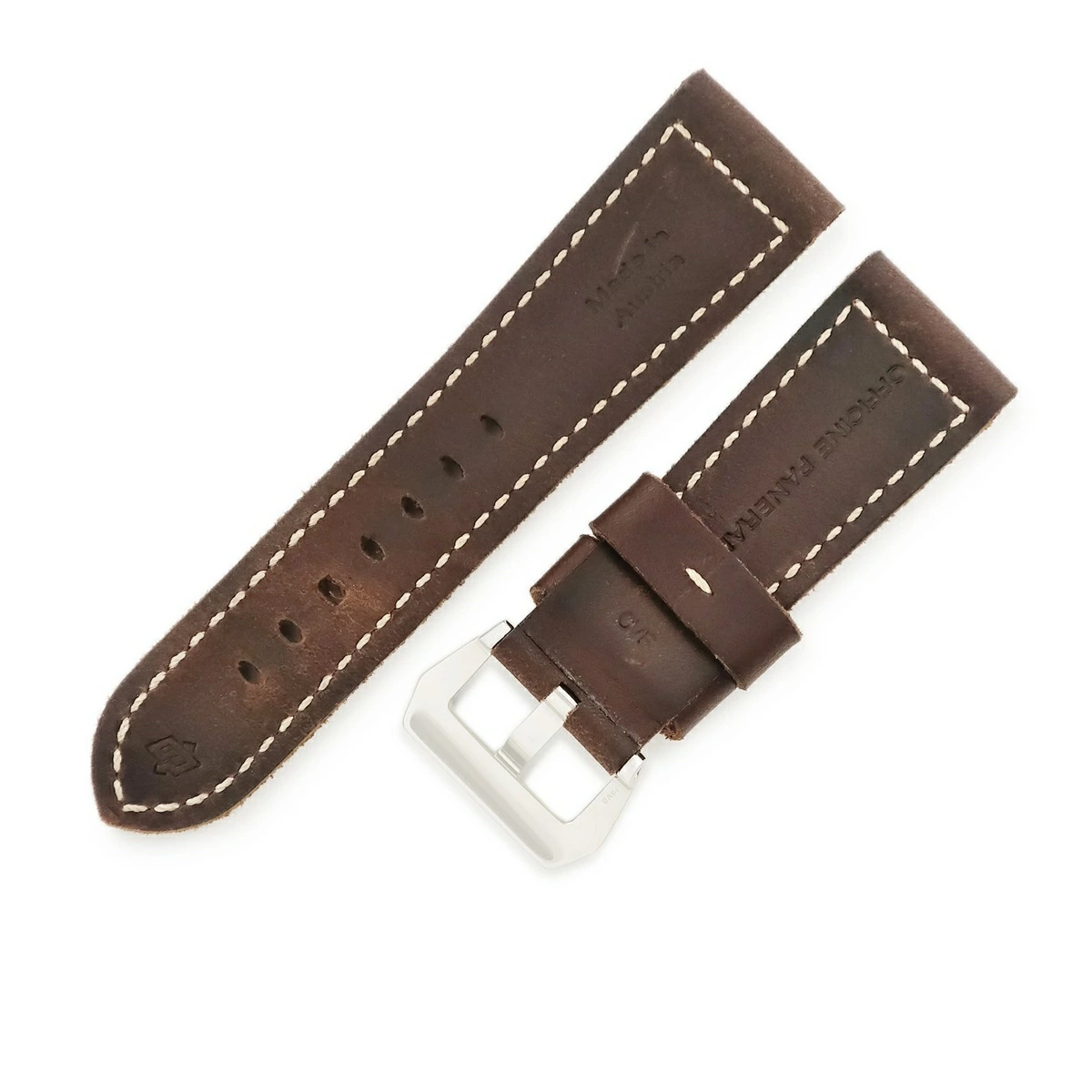 Genuine Panerai Luminor Leather Strap, Stainless Steel, Brown, Replacement, Genuine Leather, 26mm, Brown, with Genuine Stainless Steel Buckle. [Pre-owned]