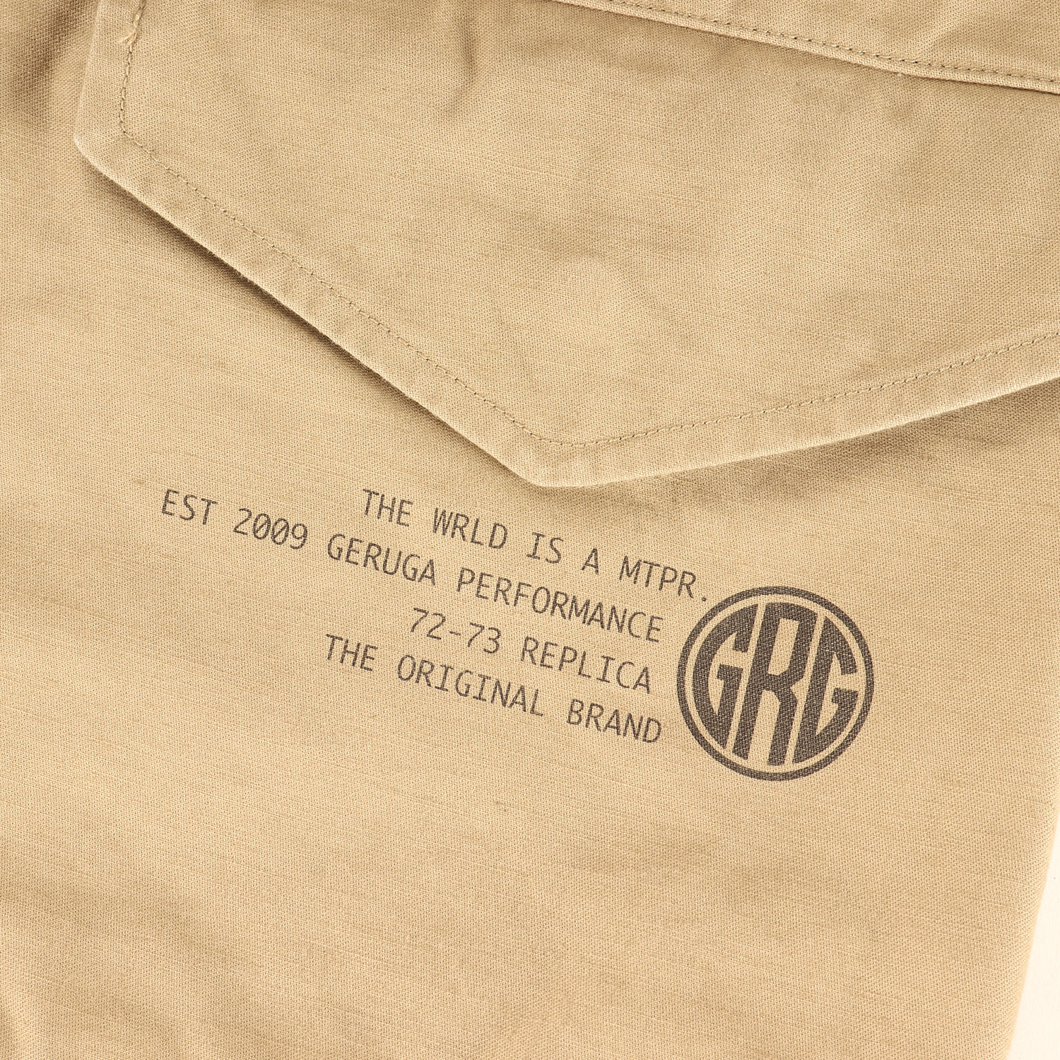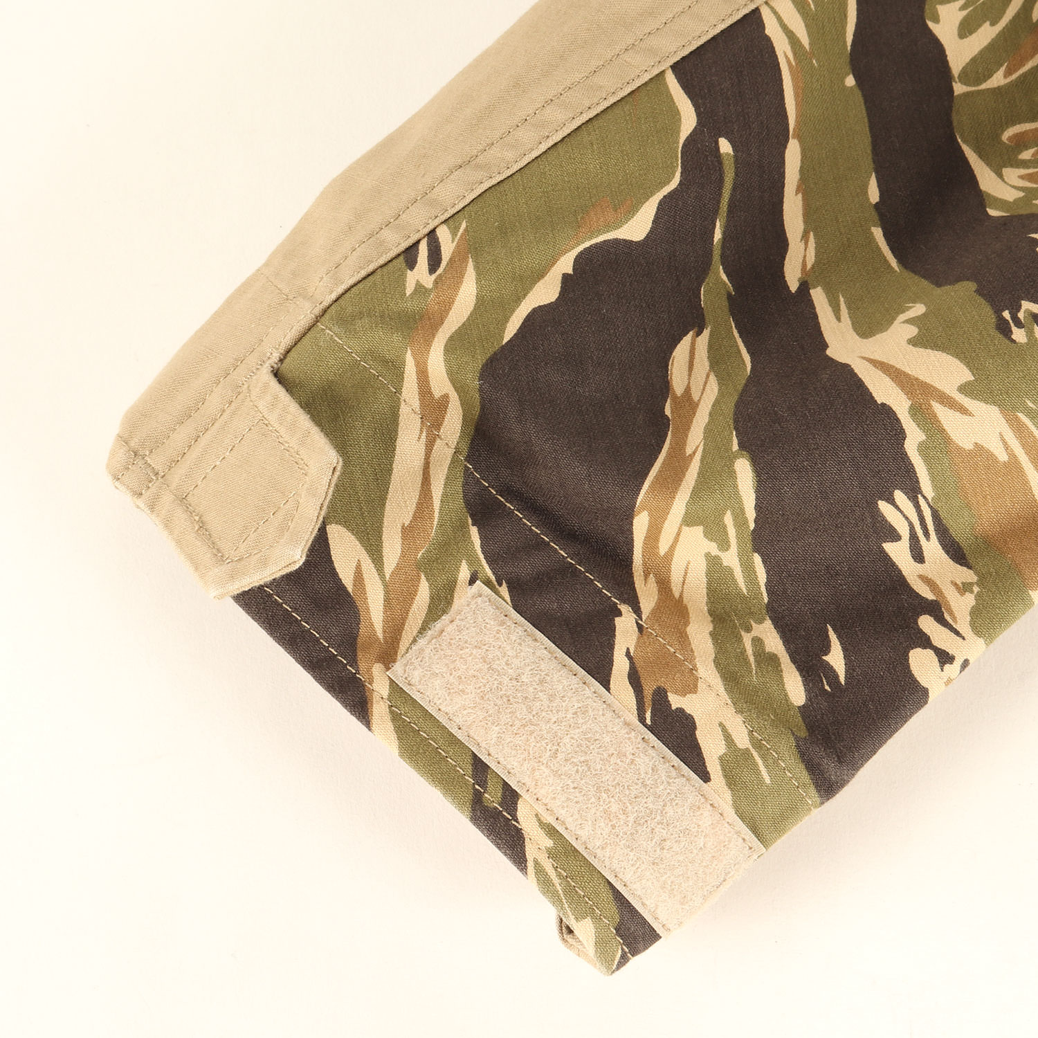 | 商品説明 | コットンバックサテン生地を使用し、袖下などをタイガーカモで切替したM-65フィールドジャケットになります。 |
