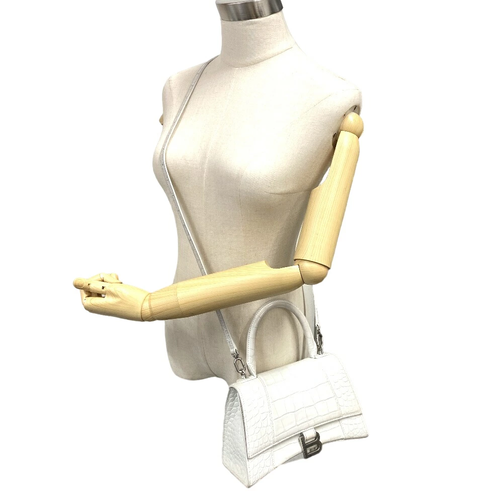 商品名 | BALENCIAGA/バレンシアガ 593546 アワーグラス 2WAYハンドバッグ クロコ型押し ショルダーバッグ ホワイト レディース |