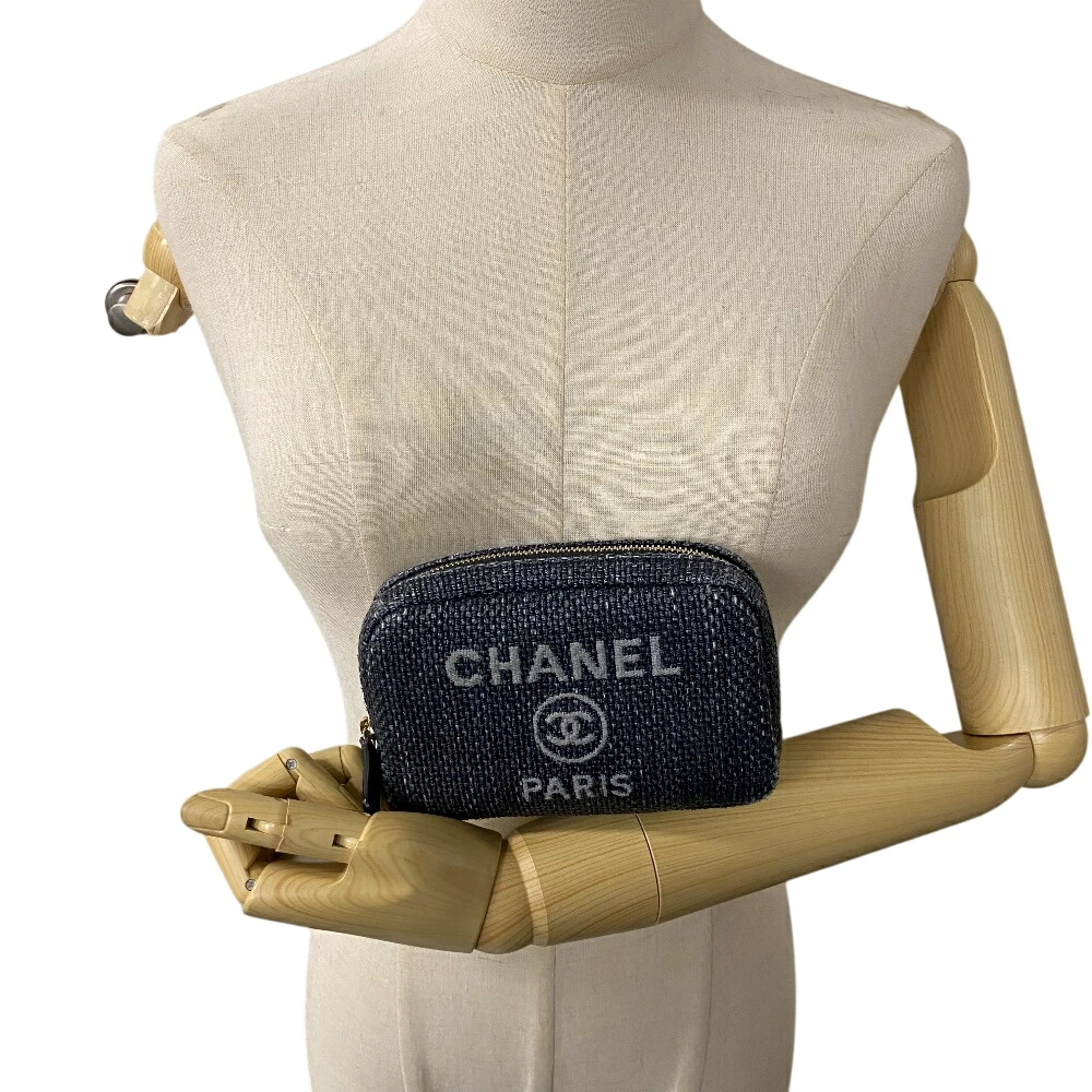 Get a 5% off coupon right away! CHANEL Deauville Coco Mark pouch. Available in large and small sizes. Stylish and cute. High-end brand. Navy. Recommended for women. Popular.