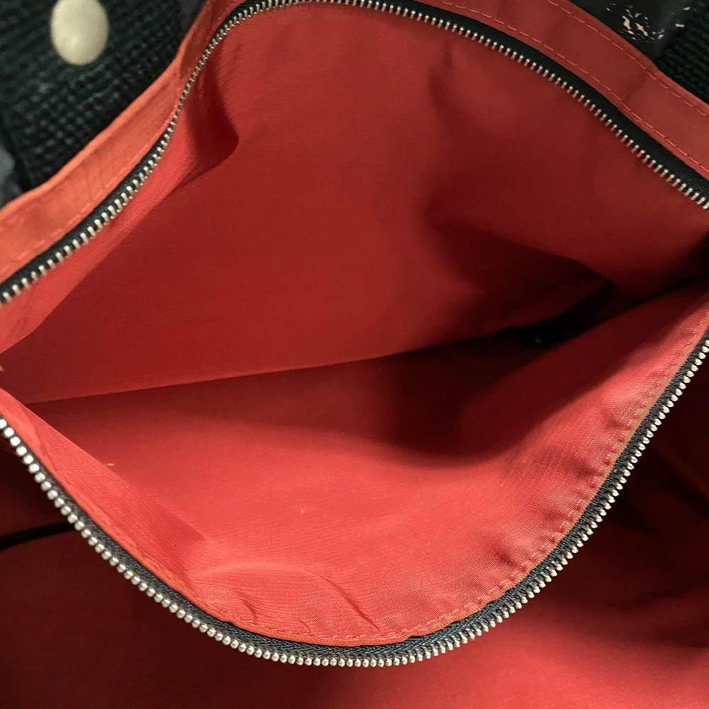 状態 | 【外・表面】小キズ、汚れ、シワ、ほつれ、毛羽立ち 【外・ハンドル-ストラップ】毛羽立ち 【外・コーナー】スレ、キズ、汚れ 【外・形状】やや型崩れ 【内側】小キズ , スレ , 汚れ , インク染み , 黒ずみ , シワ 【ファスナー部分】小キズ、スレ、くすみ 【におい】古い匂い 【金具部分】スレ、キズ、くすみ |