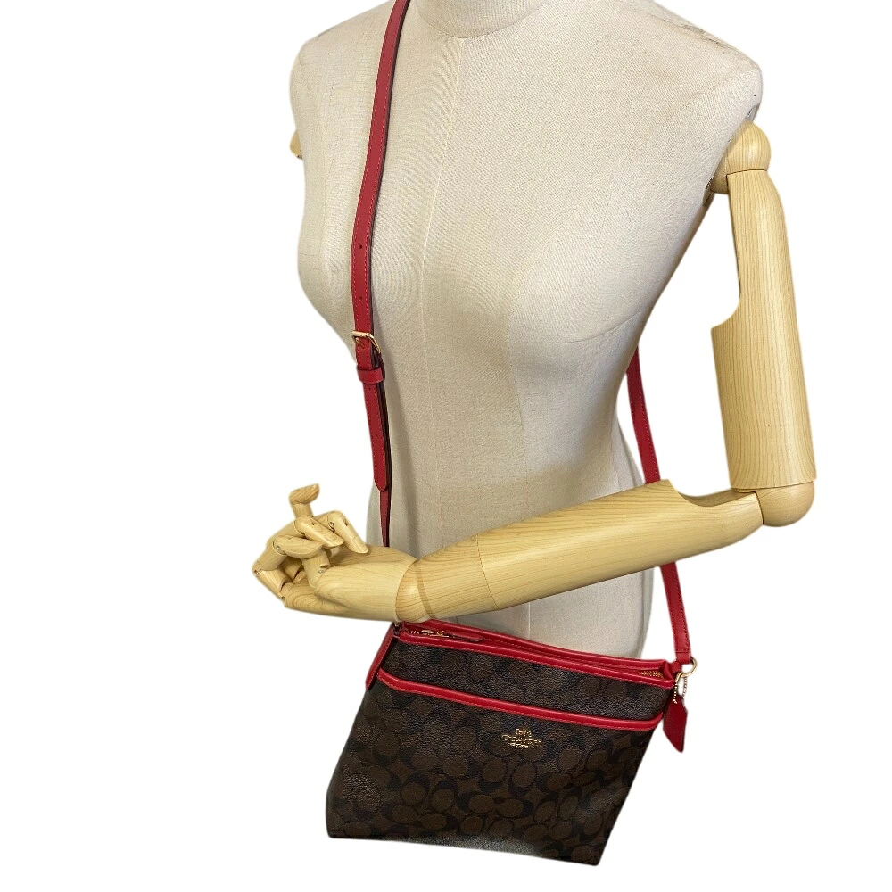 Get a 5% off coupon right away! COACH F29210 SIG ZIP FILE XBODY Signature Shoulder Bag, Brown, Recommended for Women.