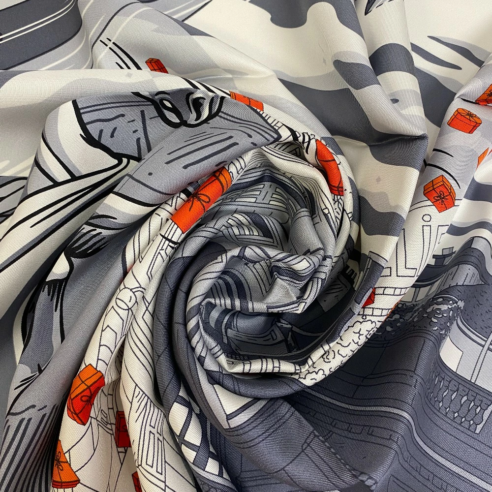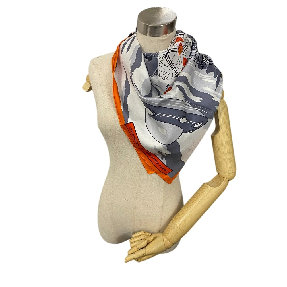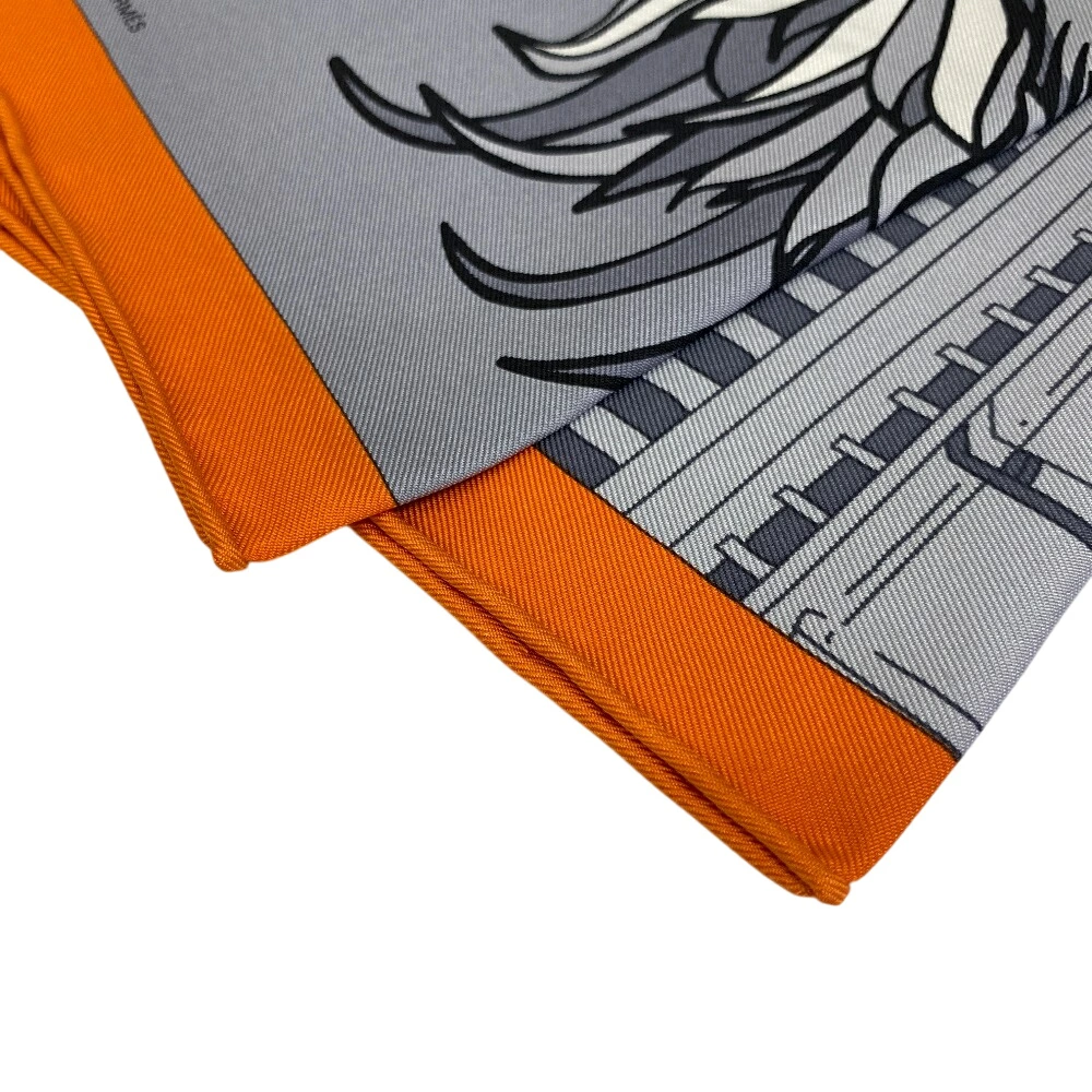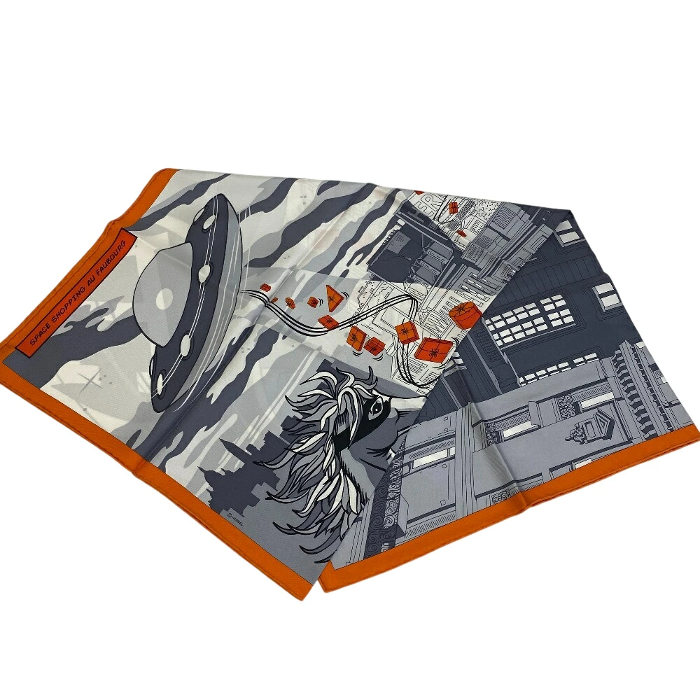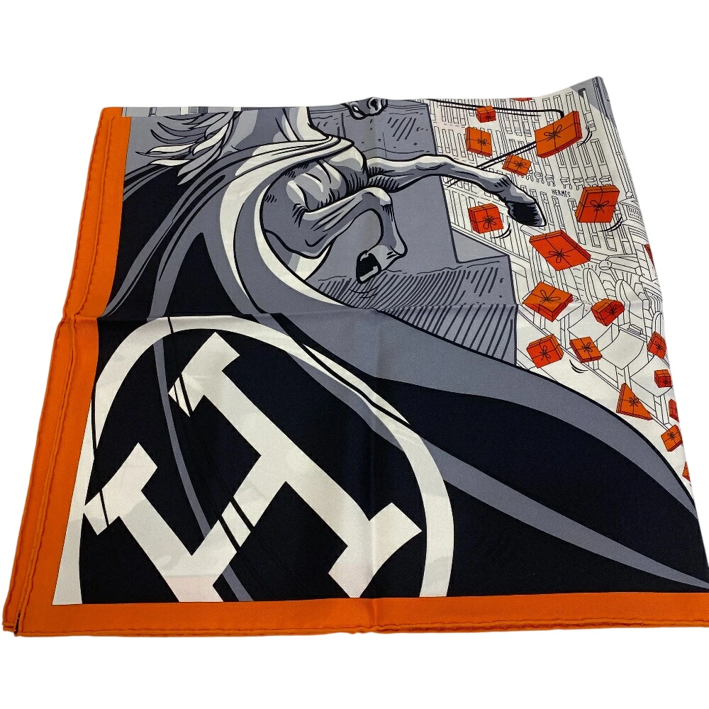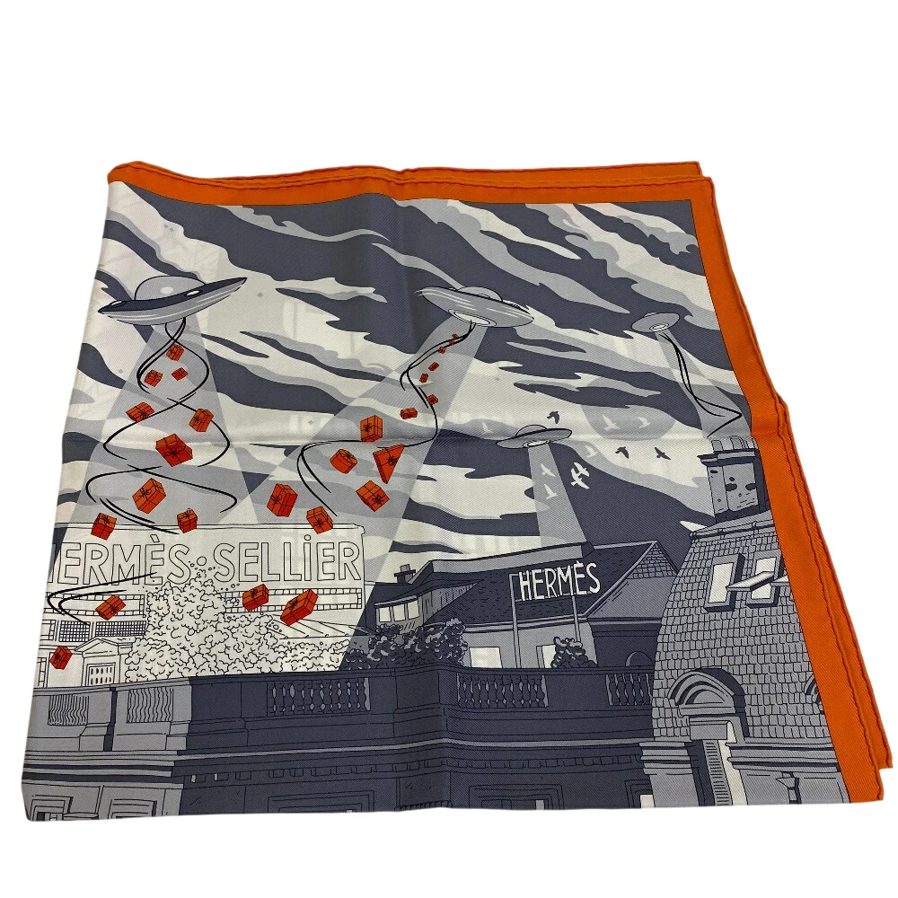 商品名 | HERMES/エルメス フォーブルでのスペースショッピング Space Shopping au Faubourg カレ90 スカーフ オレンジ レディース |