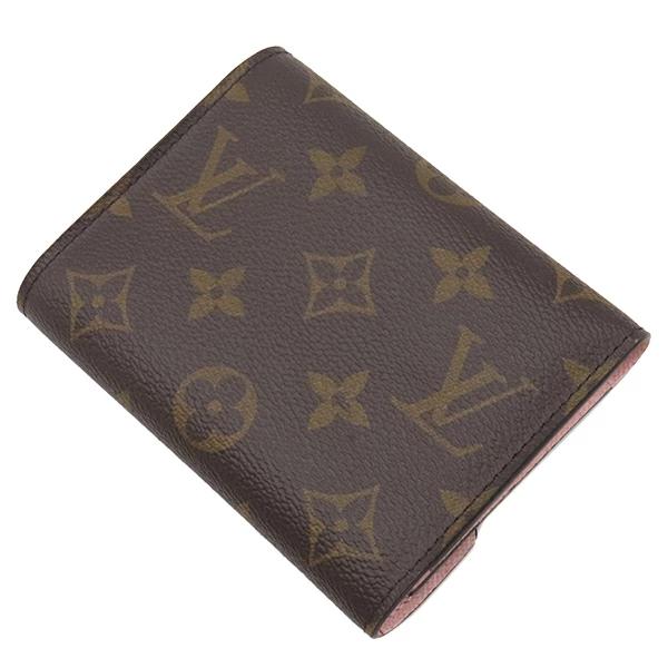 ルイヴィトン LOUIS VUITTON 三つ折り財布 ポルトフォイユ ヴィクトリーヌ モノグラム ローズバレリーヌ コンパクト 茶 バイカラー イニシャル刻印あり ゴールド金具 RFID M62360 レディース定番 人気 美品 【中古】