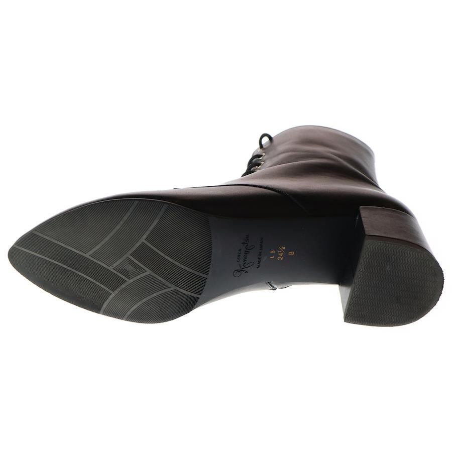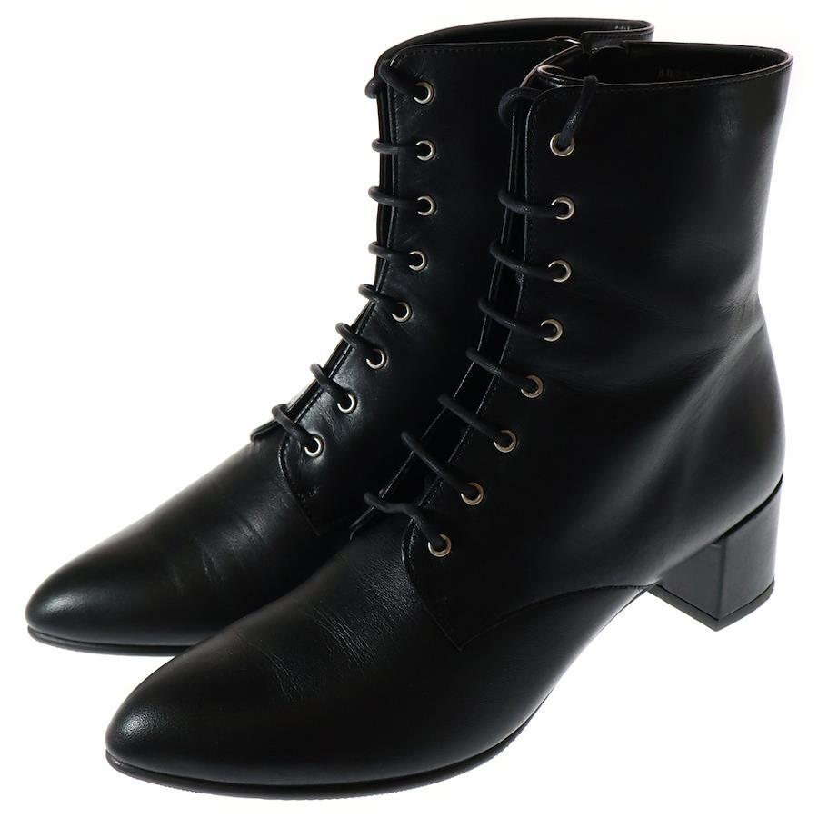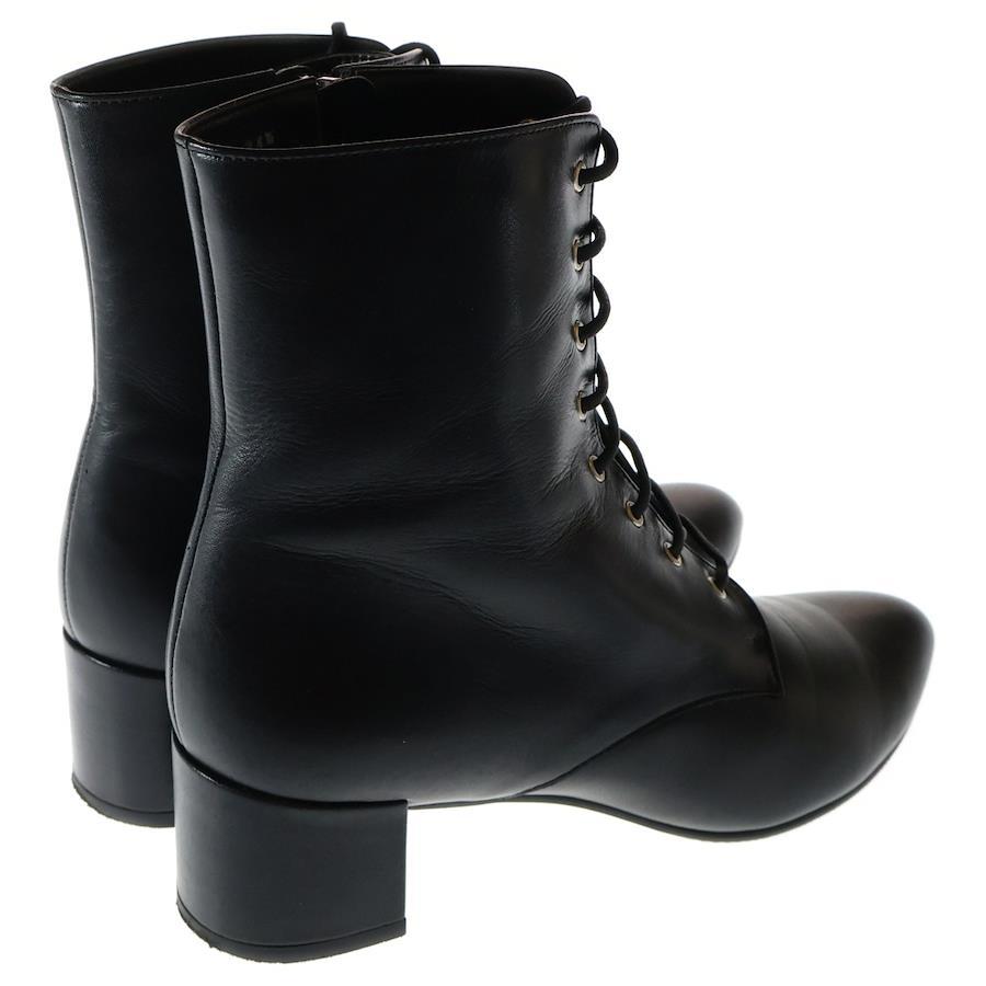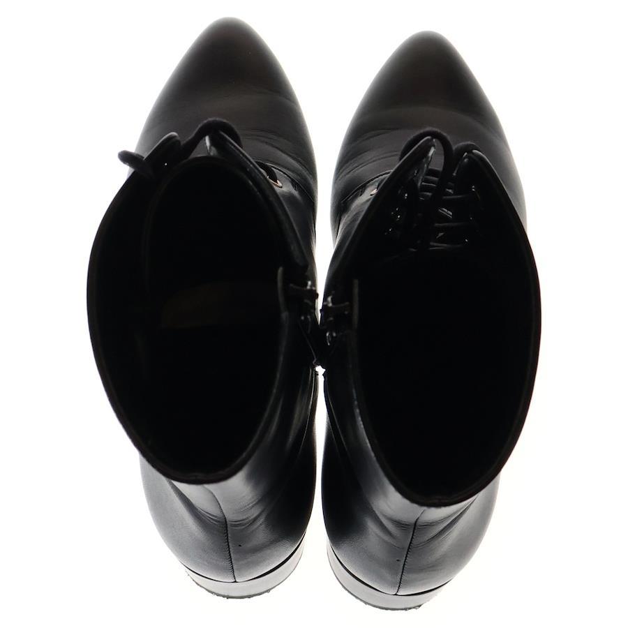 [モデル]レザー サイドジップ レースアップ ハイカット ショートブーツ ヒール シューズ ブラック レディース