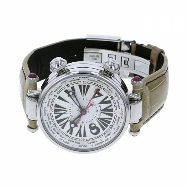 お問い合わせ商品IDW163959ブランドジオ・モナコ商品名ジオ・モナコ GIO MONACO ジオポリス 379A シルバー文字盤 中古 腕時計 メンズ型番379A文字盤色シルバー文字盤種-素材ステンレスレザー革サイズケースサイズ: 47.0mmムーブメント自動巻き機能ワールドタイムデイト表示防水200m防水当店保証ご購入日より1年付属品国際保証書(ギャランティー) 有り純正ボックス 有り商品状態[ 中古 ] ※ 外装仕上げ済み大きな目立つ傷はございませんが、中古品につきケース全体に多少の小傷がございます。※詳細はお問い合わせください。商品説明ジオモナコは時計業界では比較的新しいブランドで、創業は2002年イタリアにてアッショーネ兄弟によって設立されました。イタリア北部スイスの国境近くにあるコモ湖の近くにあるキアッソに本社をおき、その雄大な自然から受けるインスピレーションを時計のデザインへと落とし込んでいます。数多くのファッショニスタを輩出しているイタリアのセンスと時計という精密機械の聖地スイス、その両方が融合したからこそ誕生したのがジオモナコです。こちらは世界各地の時間が分かるジオポリスワールドタイムです。ご注文・ご来店前にご確認くださいませご来店購入をご希望の場合は、ご来店前に在庫の確認をお願いいたします。当サイトの商品は、実店舗でも販売しておりますので、あらかじめ在庫のご確認をお願いいたします。売り切れの際はご注文をキャンセルさせていただきます事ご容赦くださいませ。流通事情などにより付属品の一部がご提供できない場合がございます。商品によってはマイナーチェンジなどにより、掲載画像と現物に差異がみられることがございます。ご使用のパソコン環境により、掲載画像と現物の色合いに若干差異がみられることがございます。予告なく価格が改定される場合がございます。返品について通信販売にてご購入いただきました商品は、品質・梱包に万全を期しておりますが、万が一ご到着時に破損・不具合がございましたら2日以内にご連絡をお願いいたします。未使用の場合に限りご返金させていただきます。なお、上記以外の理由やお客様都合、ご使用済みの商品のご返品はお受けいたしかねます。