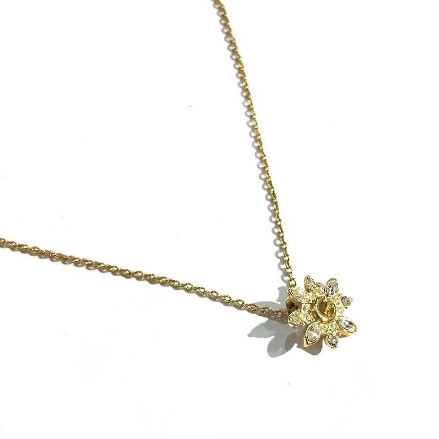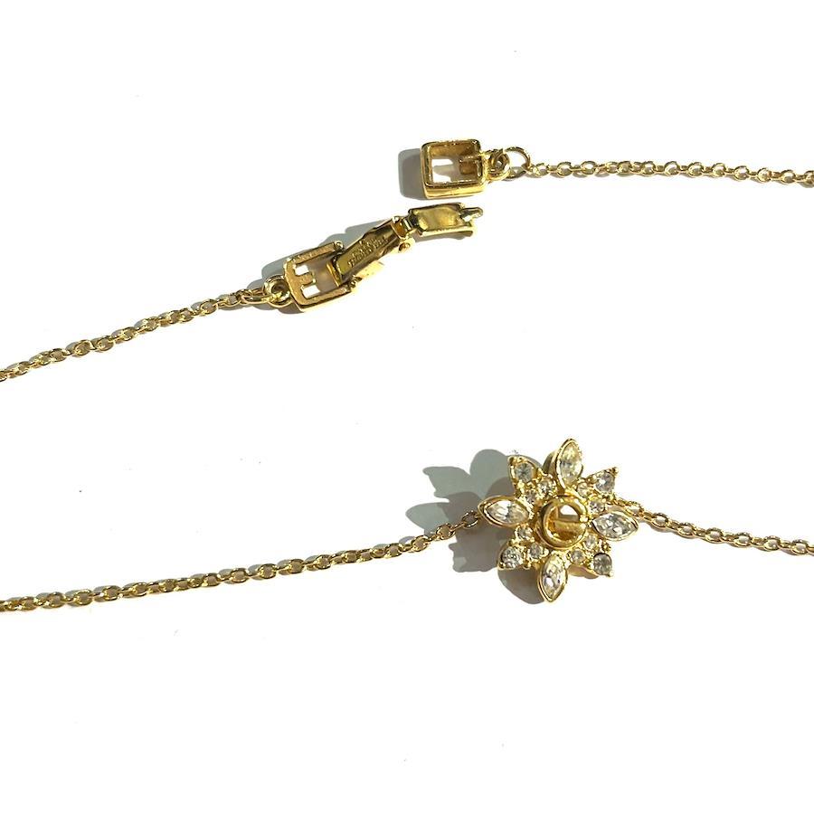 繊細な花びらに散りばめられたクリアストーンが、光を受けて凛と輝くジバンシィのヴィンテージネックレス。どの角度から見ても華やかで、デコルテを美しく見せてくれる存在感です。