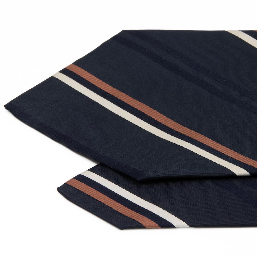 フランスのモード界を牽引するメゾンが、ネイビー、ブラウン、オフホワイトの絶妙な配色でストライプを描きました。