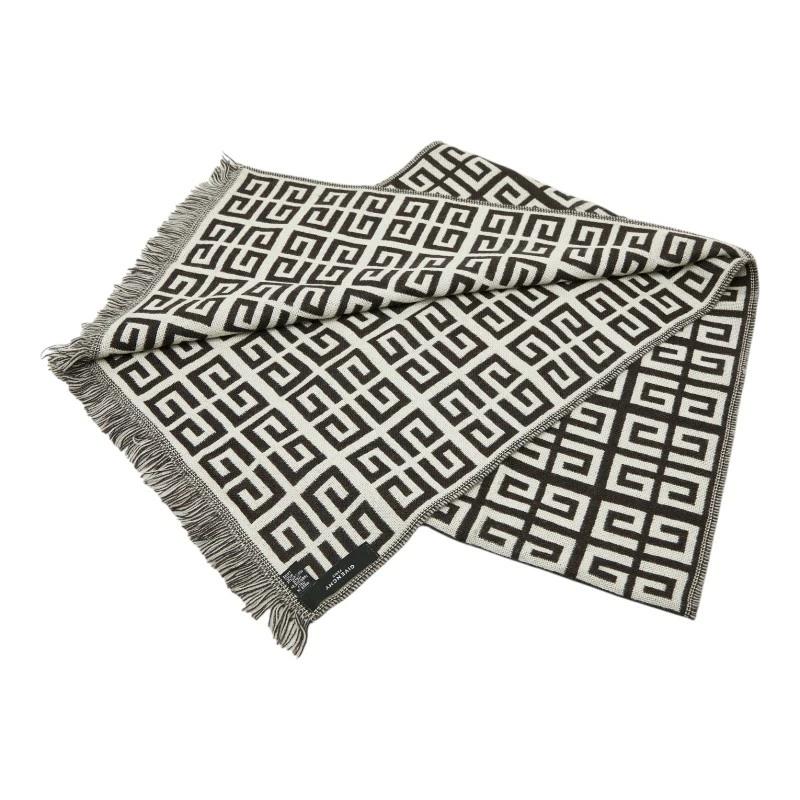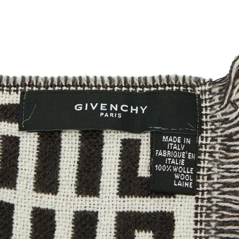 Givenchy logo scarf, brown and white wool, women's, pre-owned.