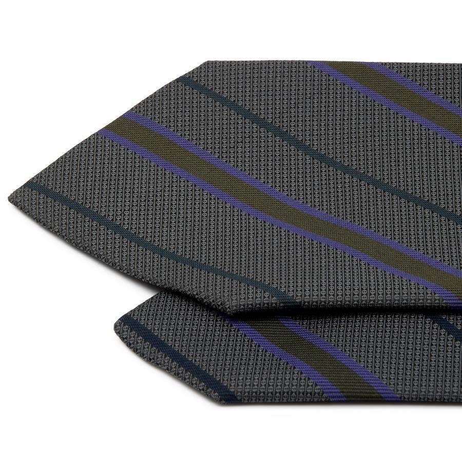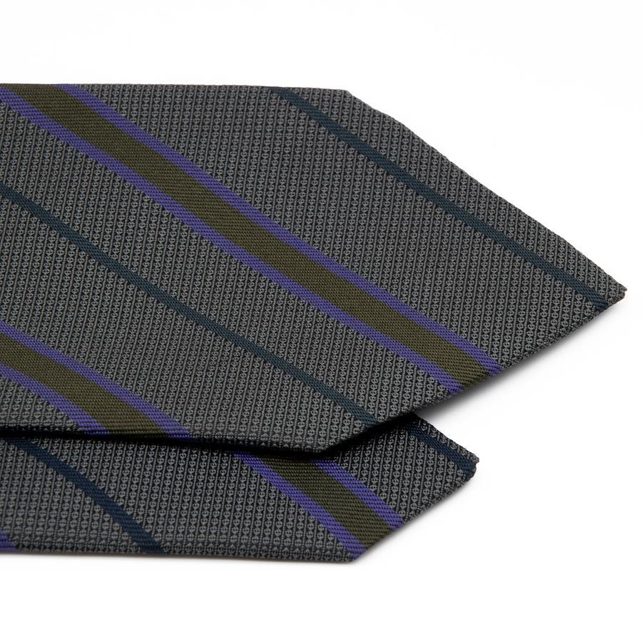 深く知的なグレーの地に、苔むした木々のようなグリーンと、夜空のようなブルーの縞模様。