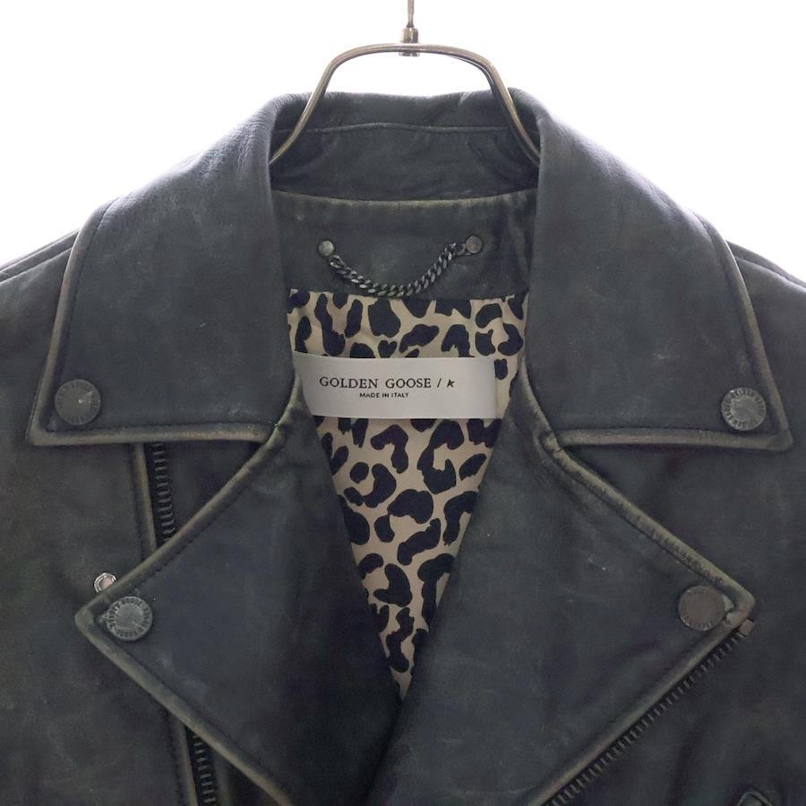 [モデル]裏地レオパード ダブルレザーライダース ジャケット ブラック GMP00297