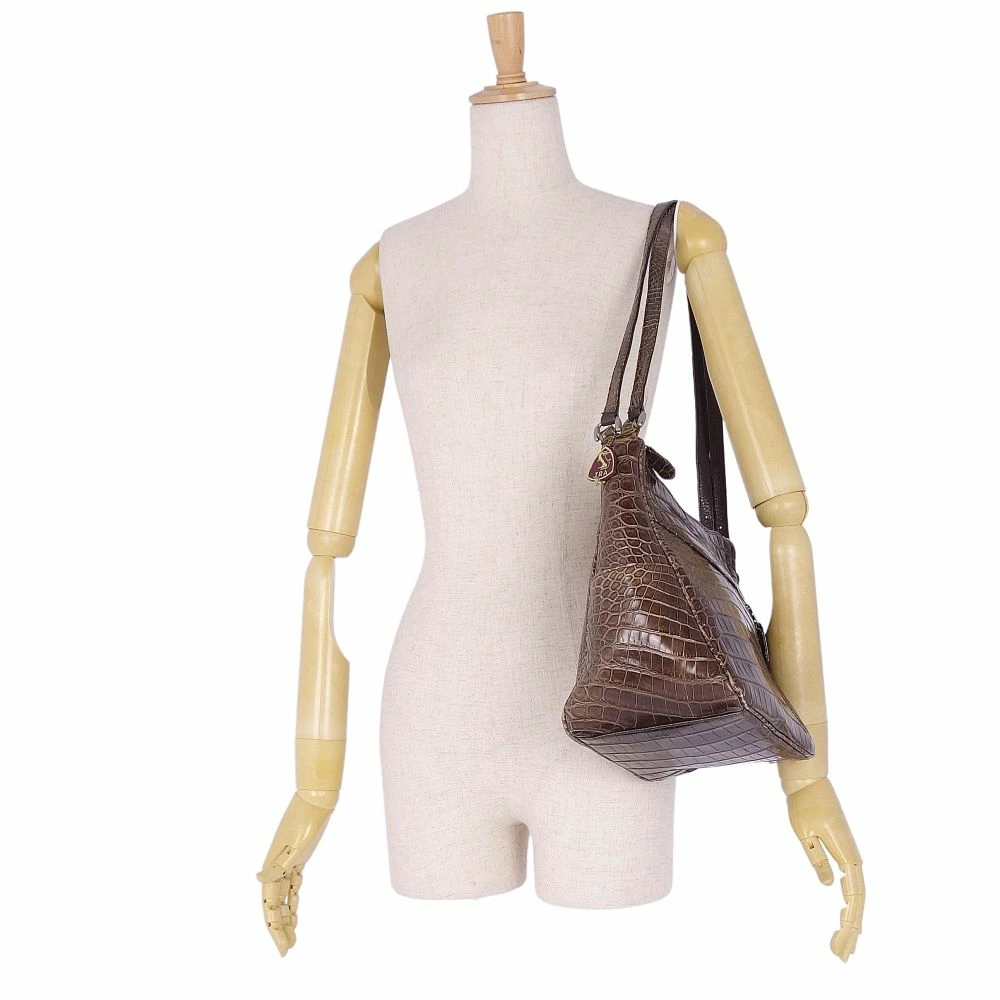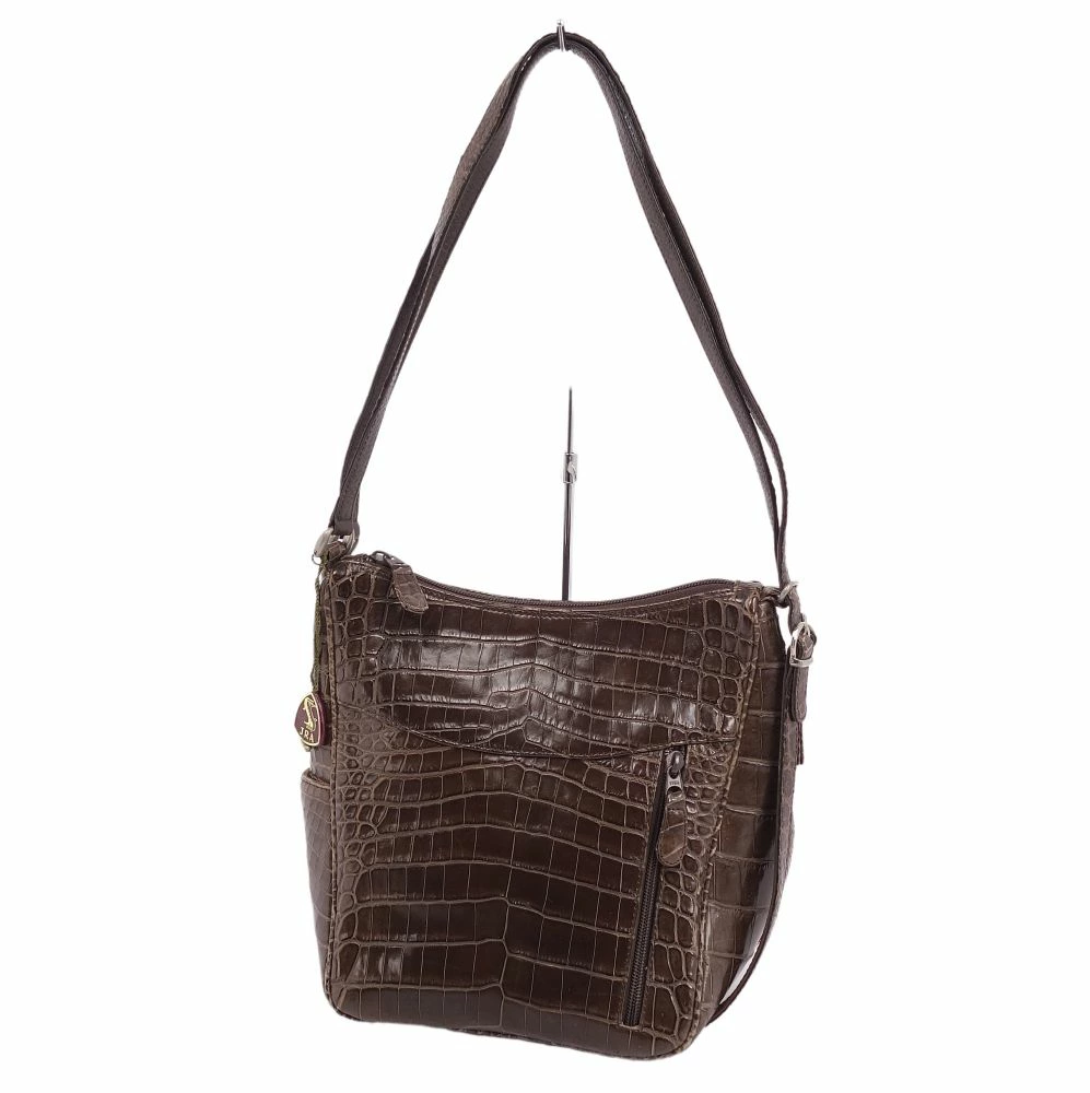 [Good Condition] Crocodile CROCODILE Bag Semi-Shoulder Bag Matte Crocodile Alligator Leather Bag Women's Brown [Used]