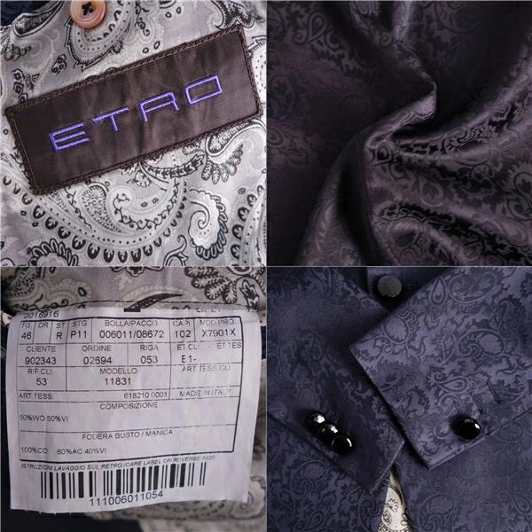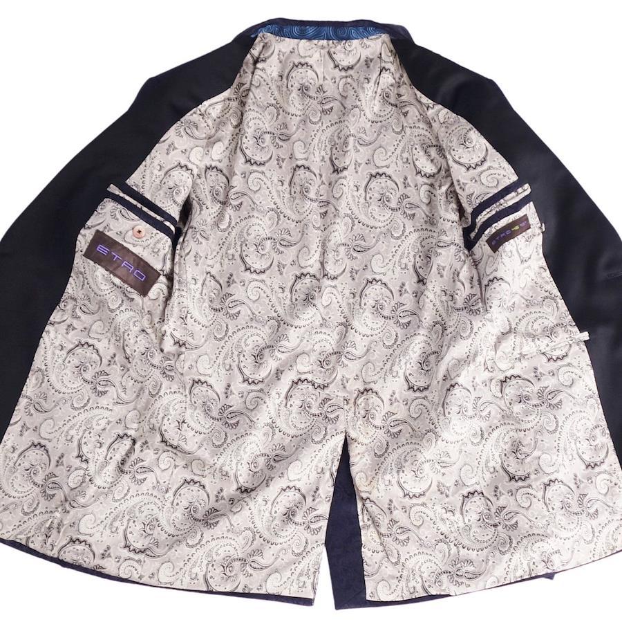■商品名エトロ ETRO ジャケット テーラード タキシード ペイズリー ウール アウター メンズ イタリア製 ネイビー サイズ46(S相当)■状態説明・艷やかで光沢感のあるウール素材を使用した、ETROのテーラードジャケットです♪・オールシーズンでお使い頂ける一品です◎・イタリア製・USEDですが気になるようなキズや汚れなどはなく全体的にキレイな状態です!・袖口のボタンに欠品が御座います。【季節感:オールシーズン】【付属品:なし】■素材表地:ウール50% ビスコース50% 裏地:コットン100%■カラーネイビー■表記サイズ46(S相当)■実寸サイズ着丈:約71cm身幅:約48cm肩幅:約42cm袖丈:約62cm■状態ランクA 使用感の少ない全体的にキレイなUSED品■店舗管理番号ce02mb-rm10e29124mens_navy mens_s
