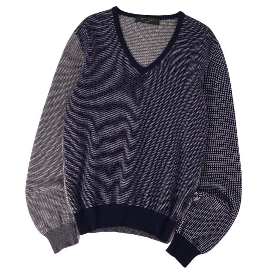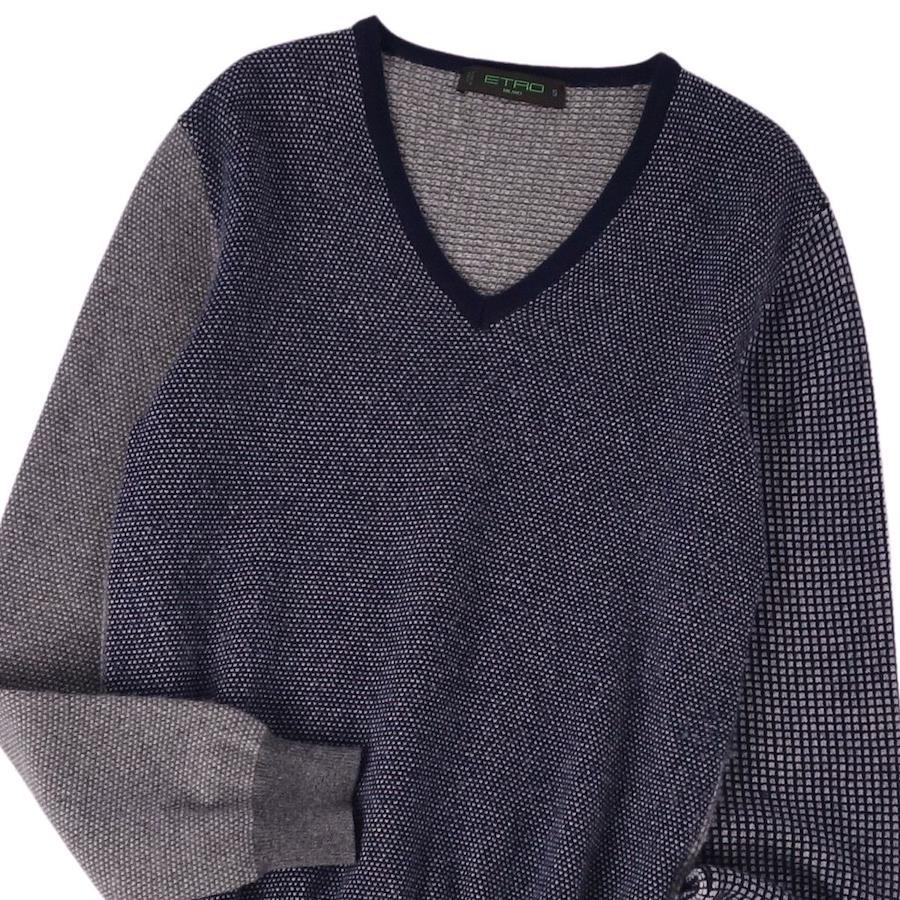 [Good Condition] ETRO Knit Sweater Pullover Cashmere Top Men's Made in Italy S Navy/Gray [Used]