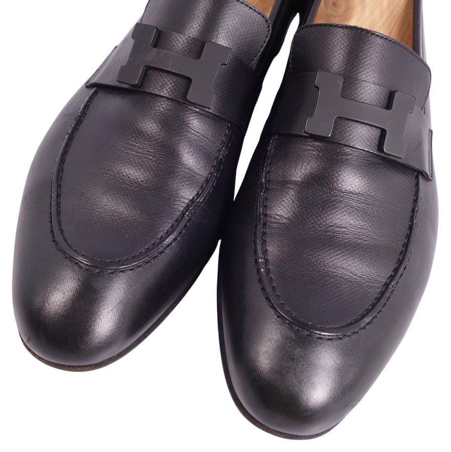 ■商品名エルメス HERMES ローファー 2022 モカシン PARIS パリ コンスタンス Hロゴ金具 レザー シューズ メンズ イタリア製 ブラック サイズ40.5(26cm相当)■状態説明・上質なカーフレザーにアイコニックなH金具デザインが目を引く、HERMESのローファー「PARIS(パリ)」です♪・上品なブラックのレザーにHロゴ金具があしらわれた象徴的なデザイン◎過度な装飾のないミニマルなデザインで幅広くお使いいただける一足です◎・イタリア製・レザー特有のスレが多少御座いますが、ご使用に差し支えるようなものはなく全体的にキレイな状態です!【季節感:オールシーズン】【付属品:なし「シューツリーの付属は御座いません」】■素材レザー■カラーブラック■表記サイズ40.5(26cm相当)■実寸サイズアウトソール:約27.5cm幅:約10cm■状態ランクAB 使用感があるが、傷や汚れの気にならない状態■店舗管理番号ce06mm-rm10e31500mens_black