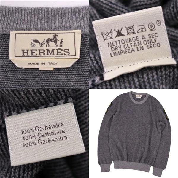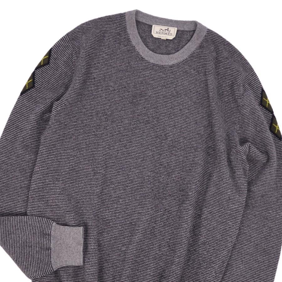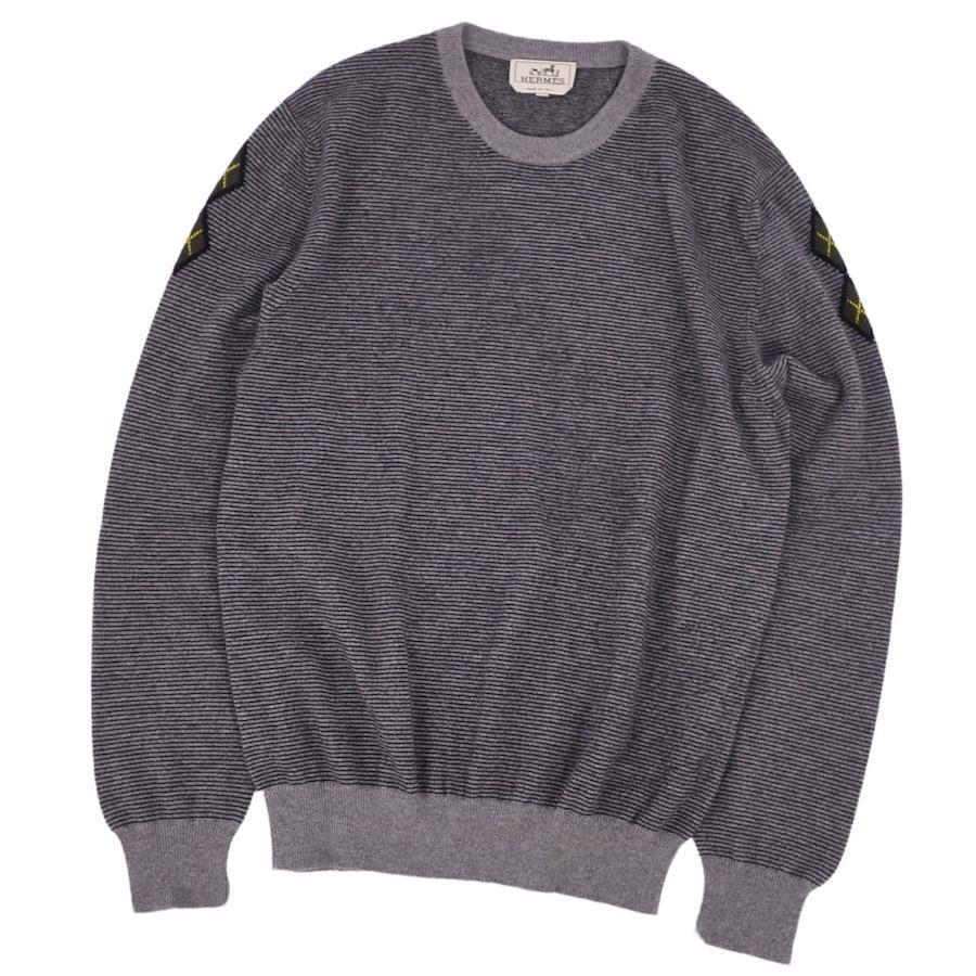 [Good Condition] Hermes HERMES Knit Sweater Long Sleeve Striped Pattern 100% Cashmere Tops Men's XL Gray [Used]