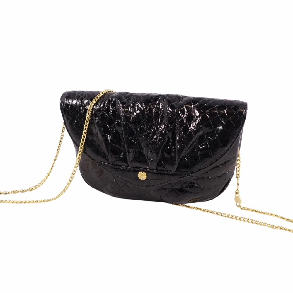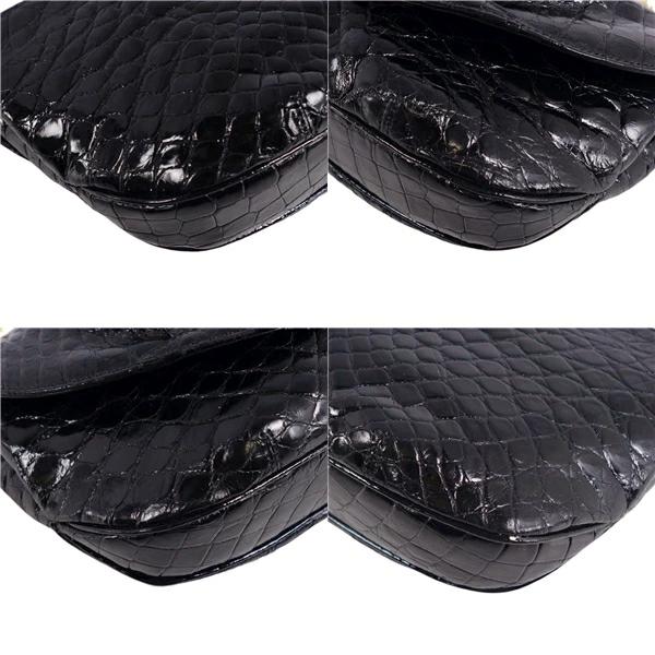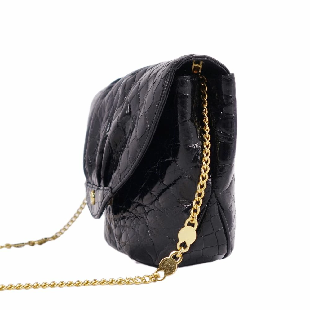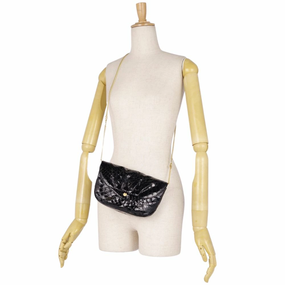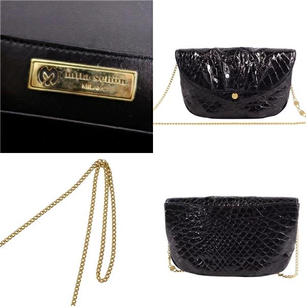 [Good Condition] Mila Schon Bag Mini Shoulder Bag Chain Crocodile Shiny Crocodile Alligator Leather Bag Women's Black [Used]