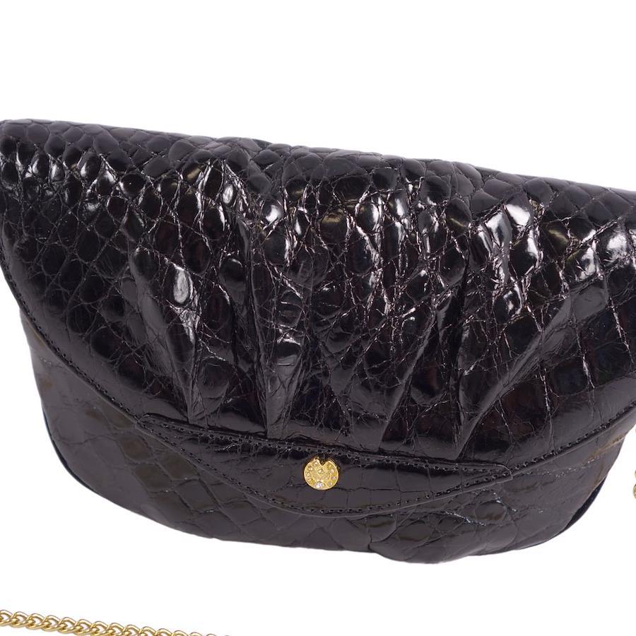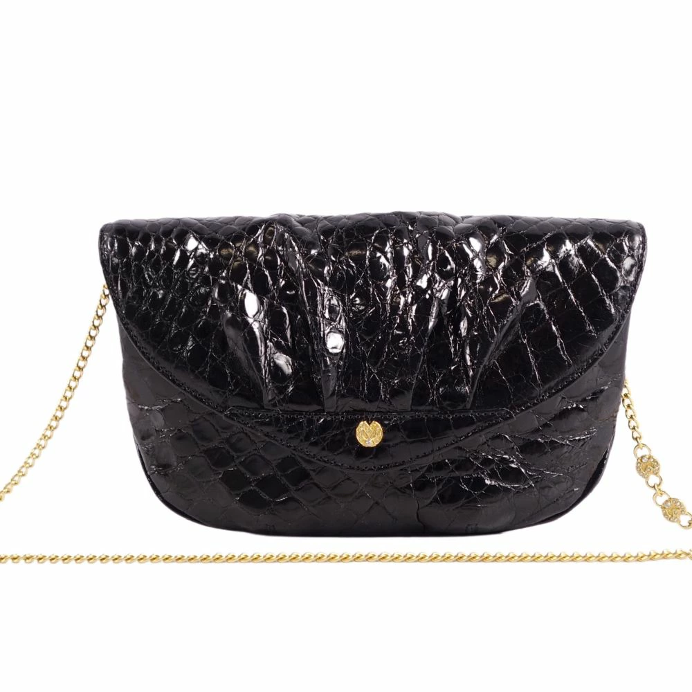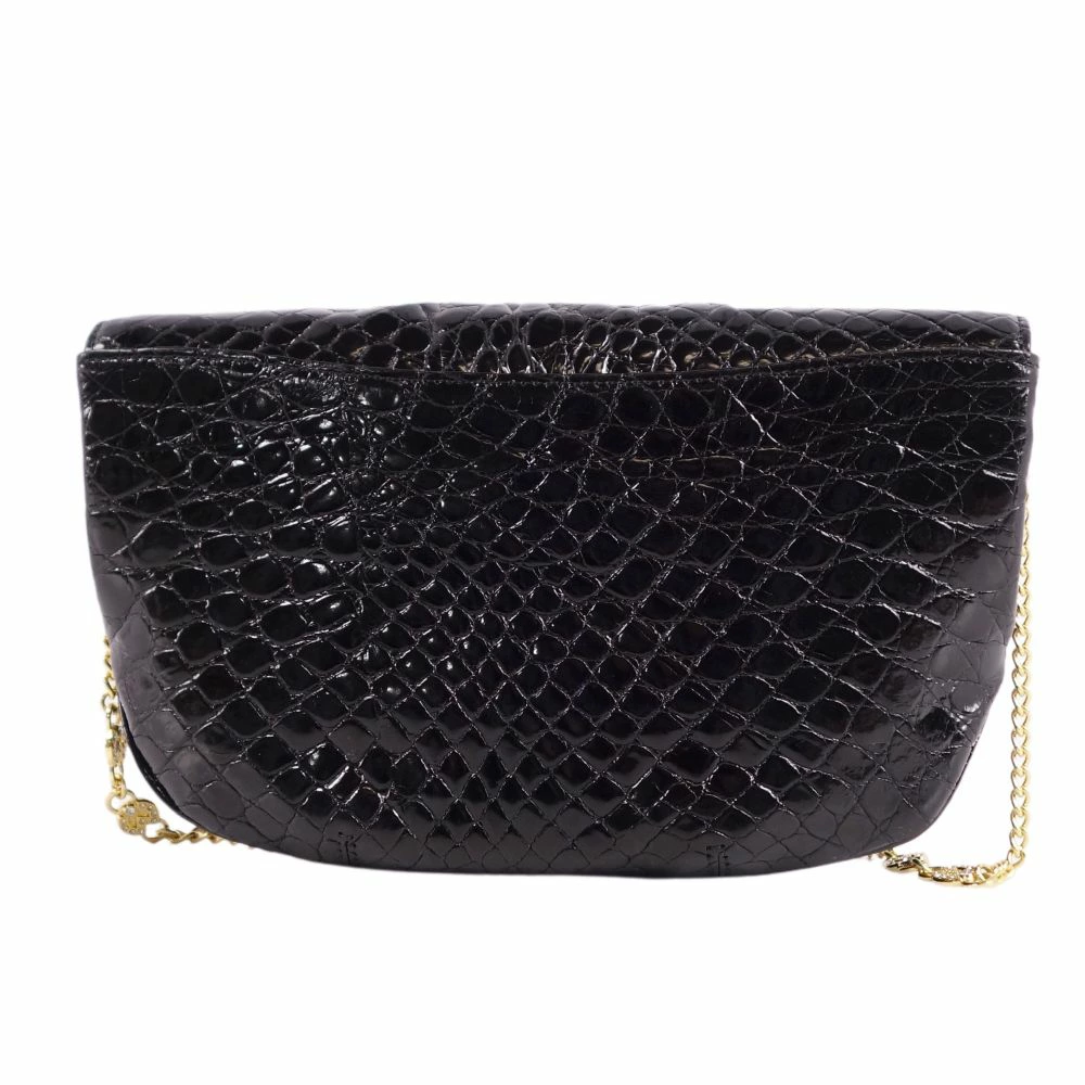 [Good Condition] Mila Schon Bag Mini Shoulder Bag Chain Crocodile Shiny Crocodile Alligator Leather Bag Women's Black [Used]