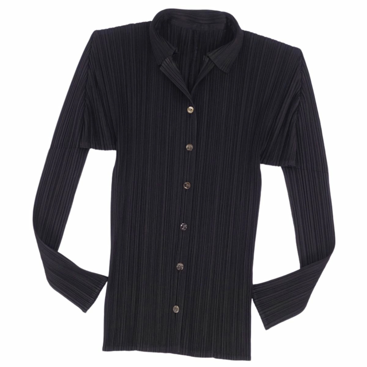 [Good Condition] PLEATS PLEASE ISSEY MIYAKE Shirt Blouse Long Sleeve Pleated Top Women's Size 3 (L) Black [Used]